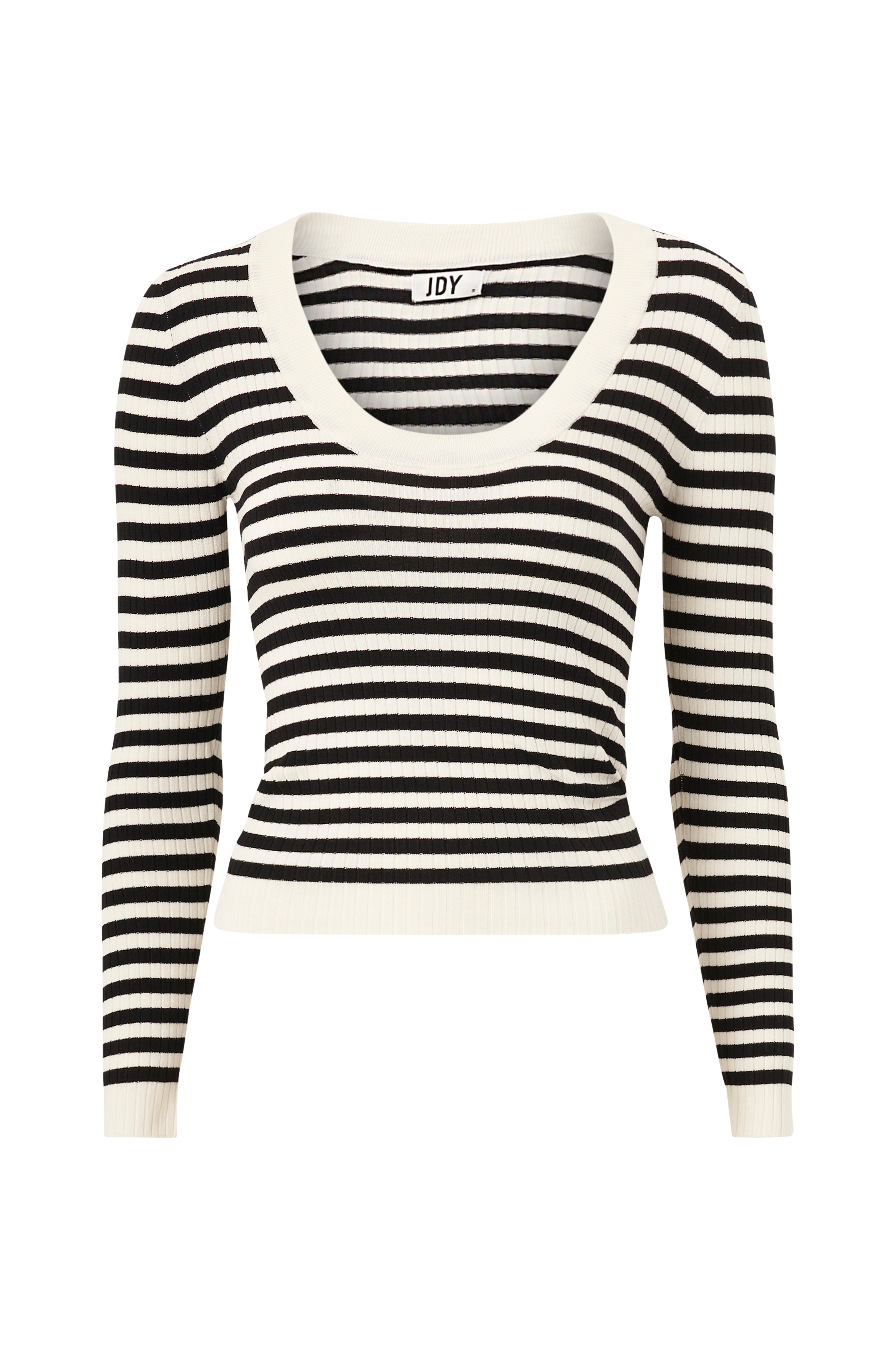 • Ribstrikket, figursyet top i viskoseblanding• Dyb, ribbet halsudskæring• Lange ærmer