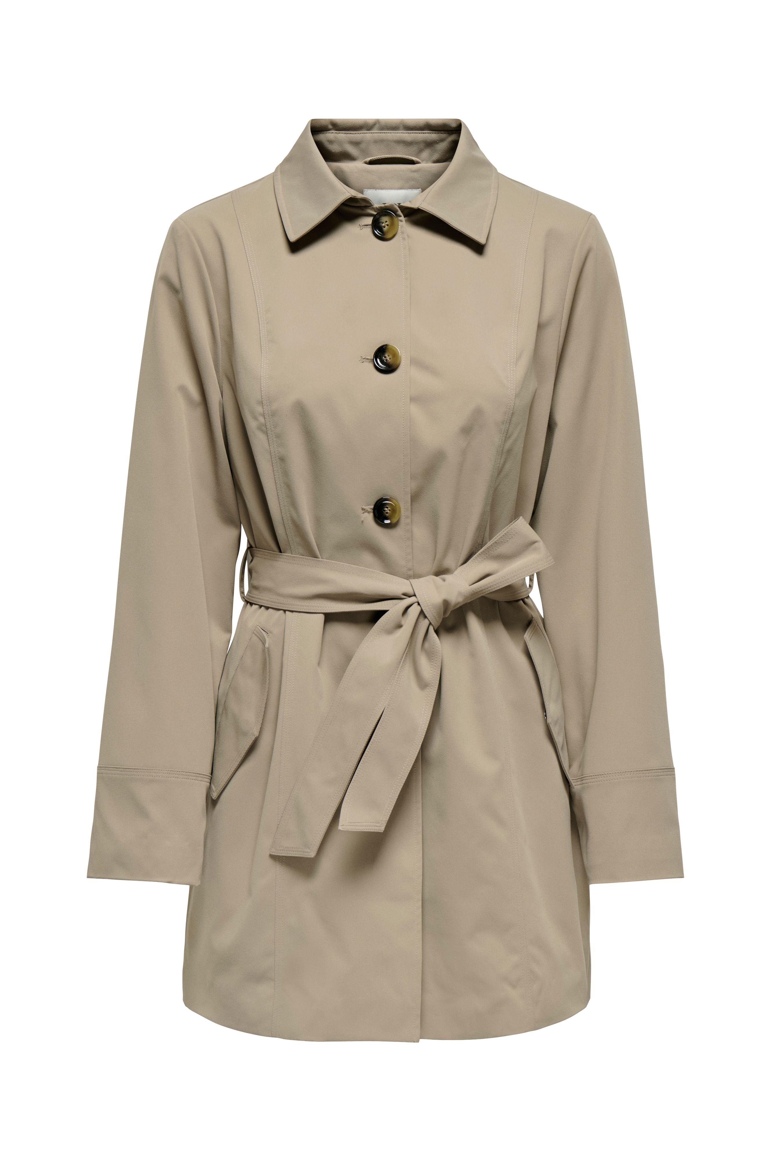 • Enkeltradet model med aftageligt bindebælte ved taljen• To lommer med trykknapslukning• Slids nede bagved• Løstsiddende linning bagpå• Længde: 83 cm i størrelse S