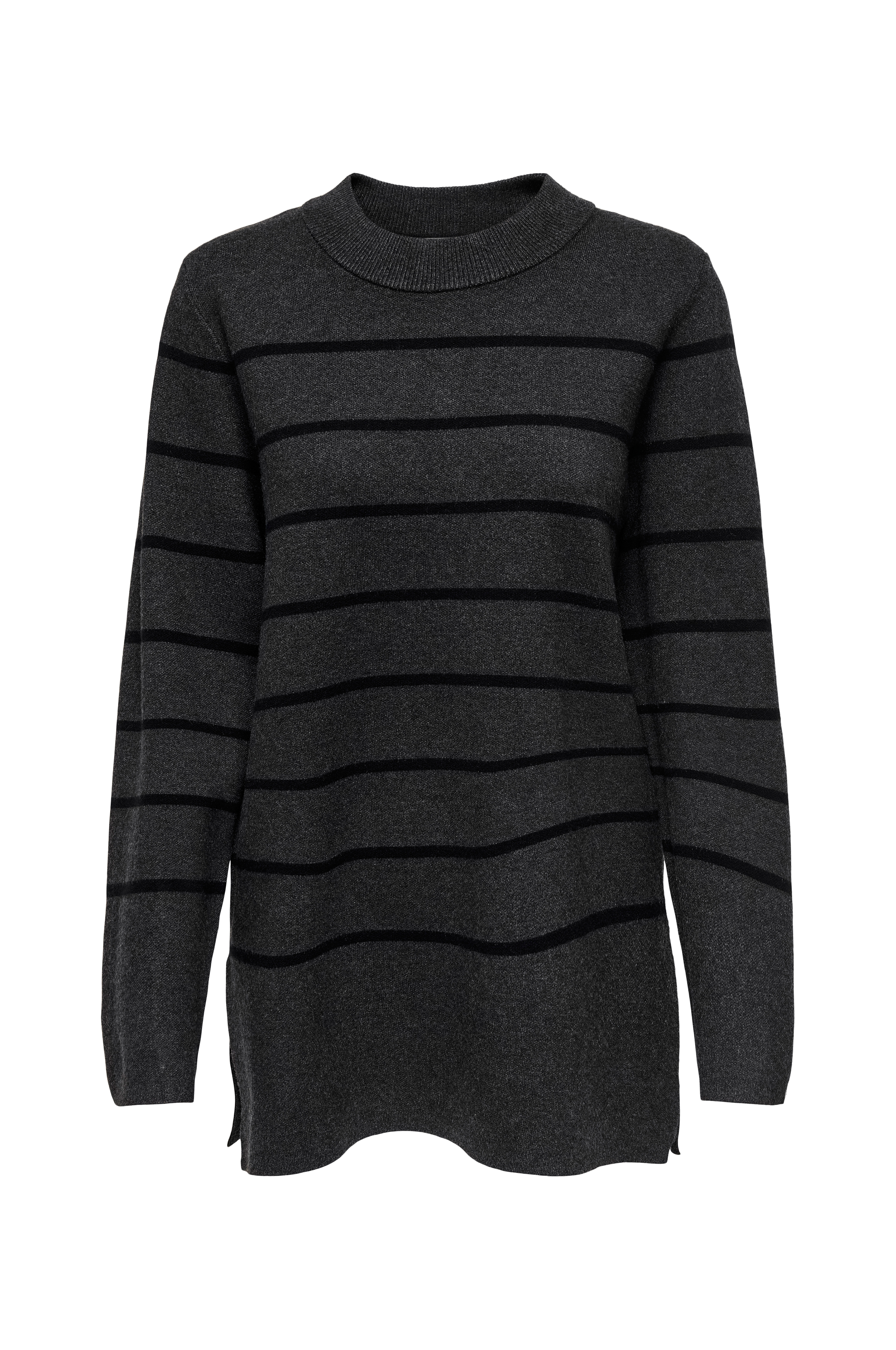 • Uformel model med strikkede striber• Halvhøj, ribstrikket krave• Langt, lige ærme• Slids nede i siderne