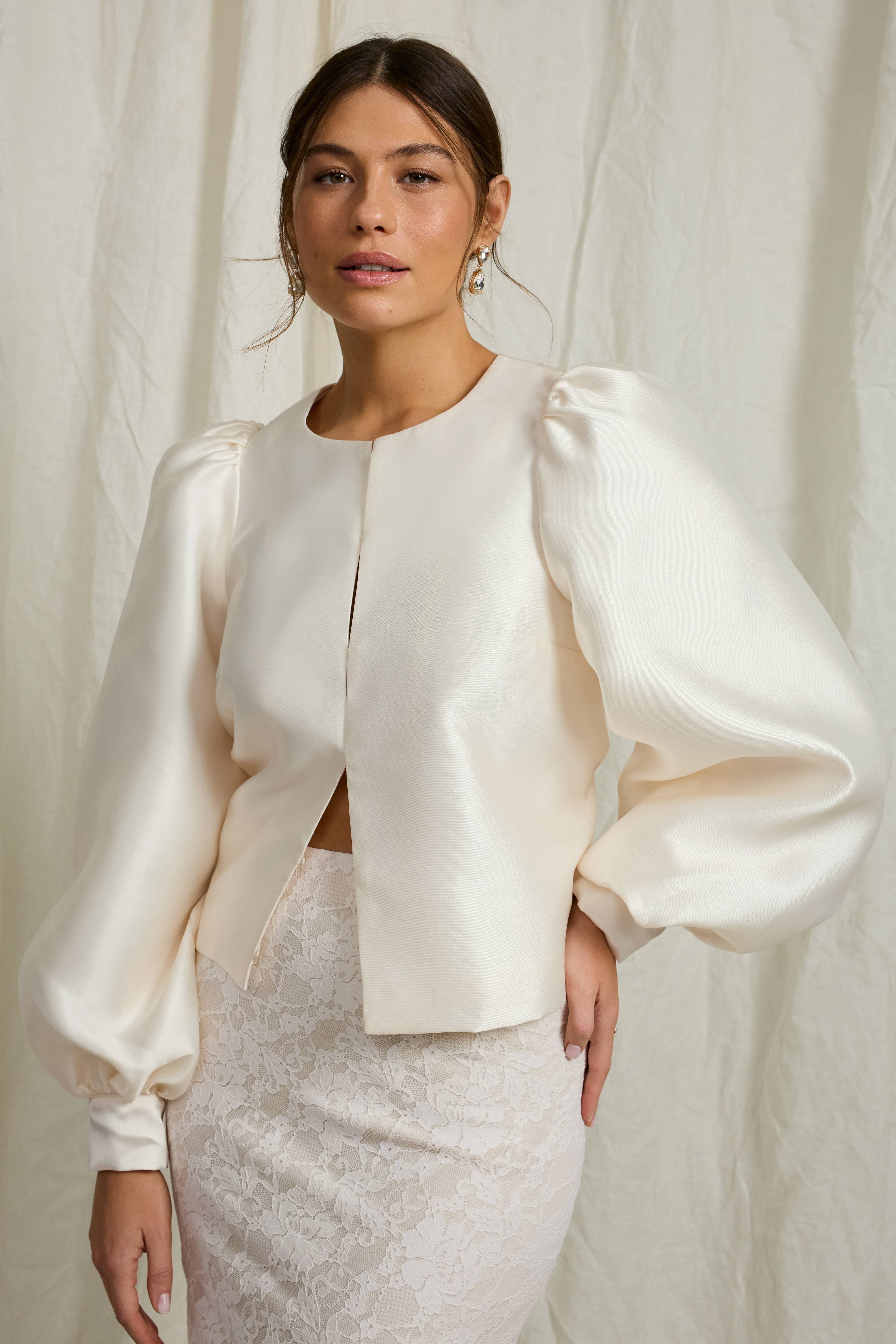 En fantastisk vellavet bluse eller lettere forårs- og sommerjakke med flot glans. Voluminøse ærmer, der giver plagget det ekstra touch. Passende kort og perfekt mørkere vinrød, som p…