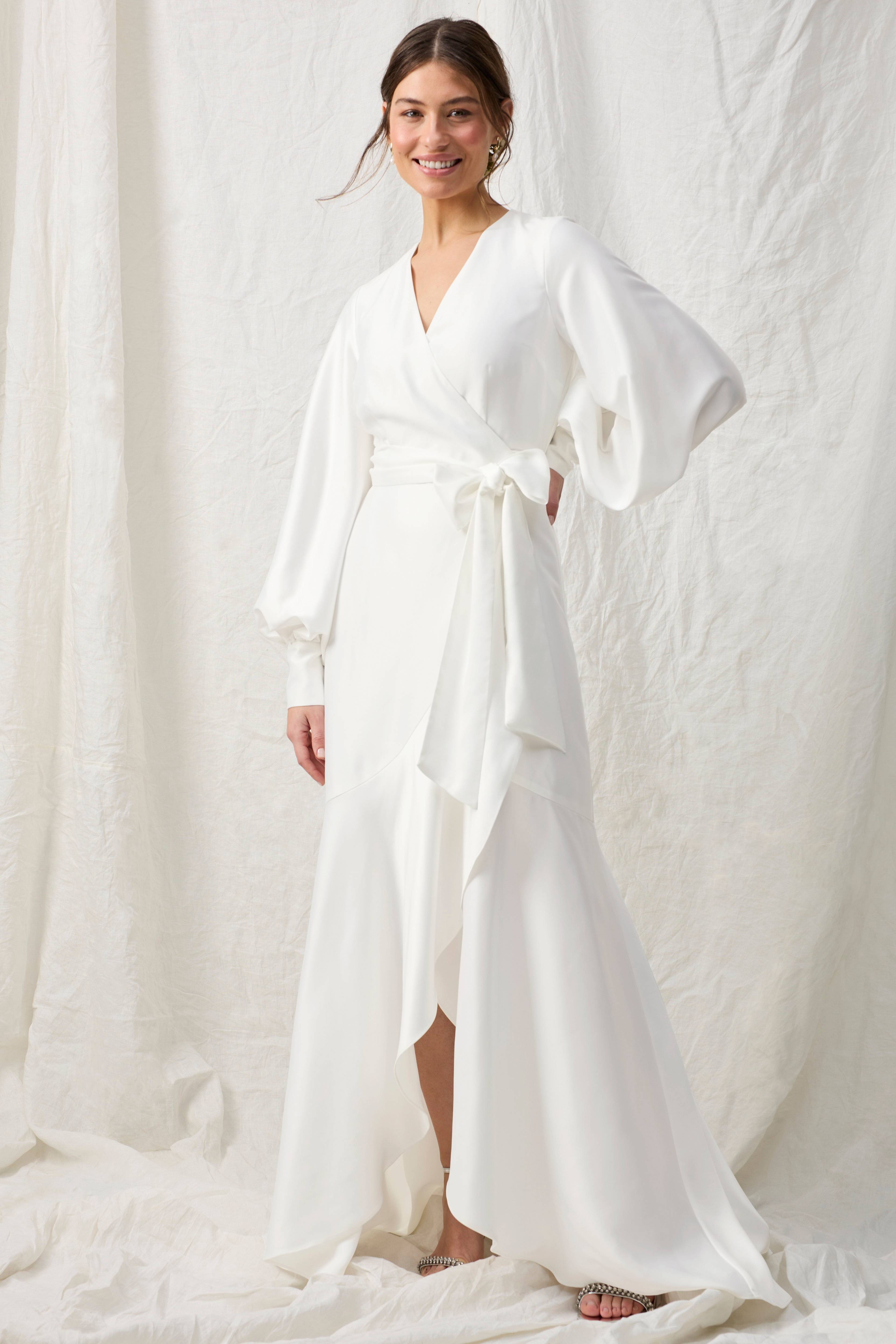 • Voluminøse ballonærmer med manchet med beklædte knapper