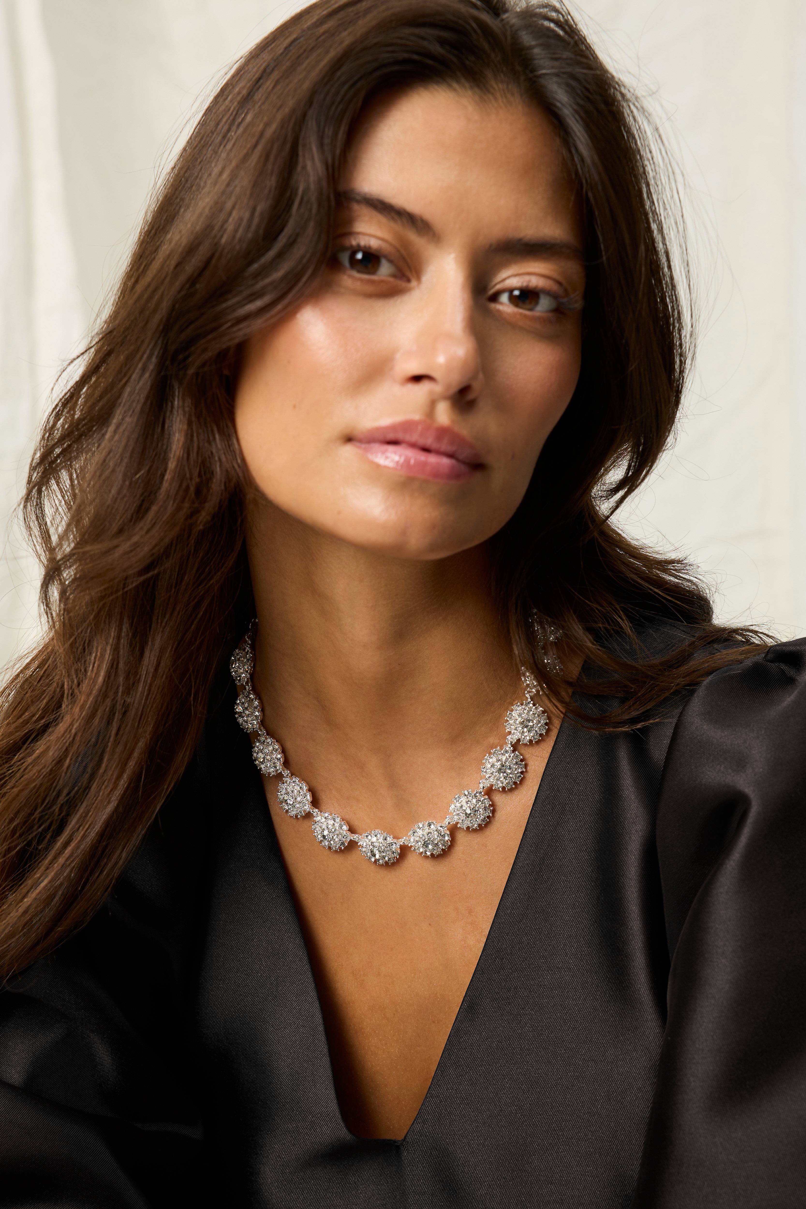 • Grov, sølvfarvet kæde i zink med glitrende, blomsterformede detaljer• Længde 45 cm, blomst 2 x 2 cm