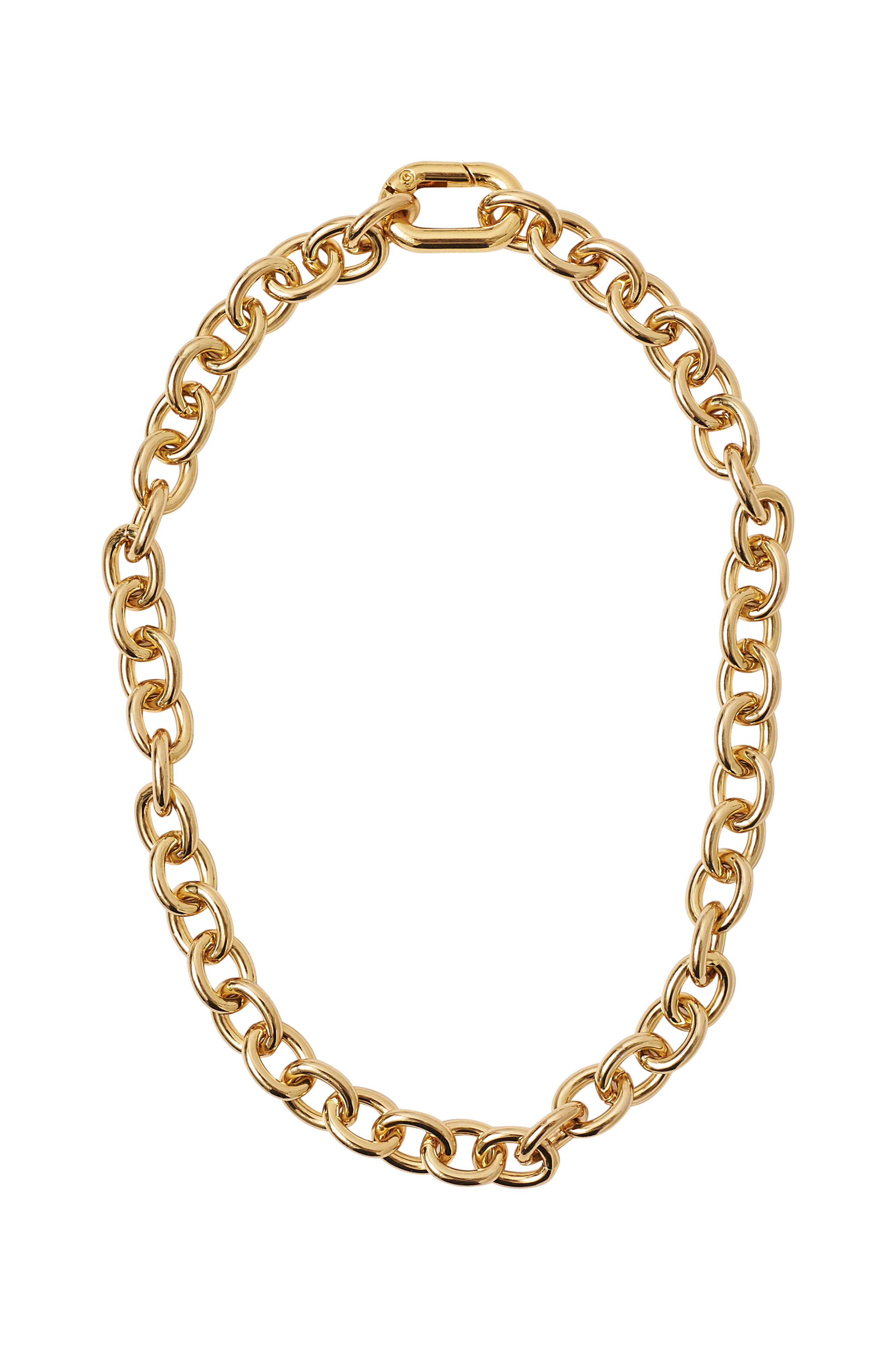 Halskæde af 95% stål og 5% messing med 18 K guldplettering. Kædens længde 42 cm.