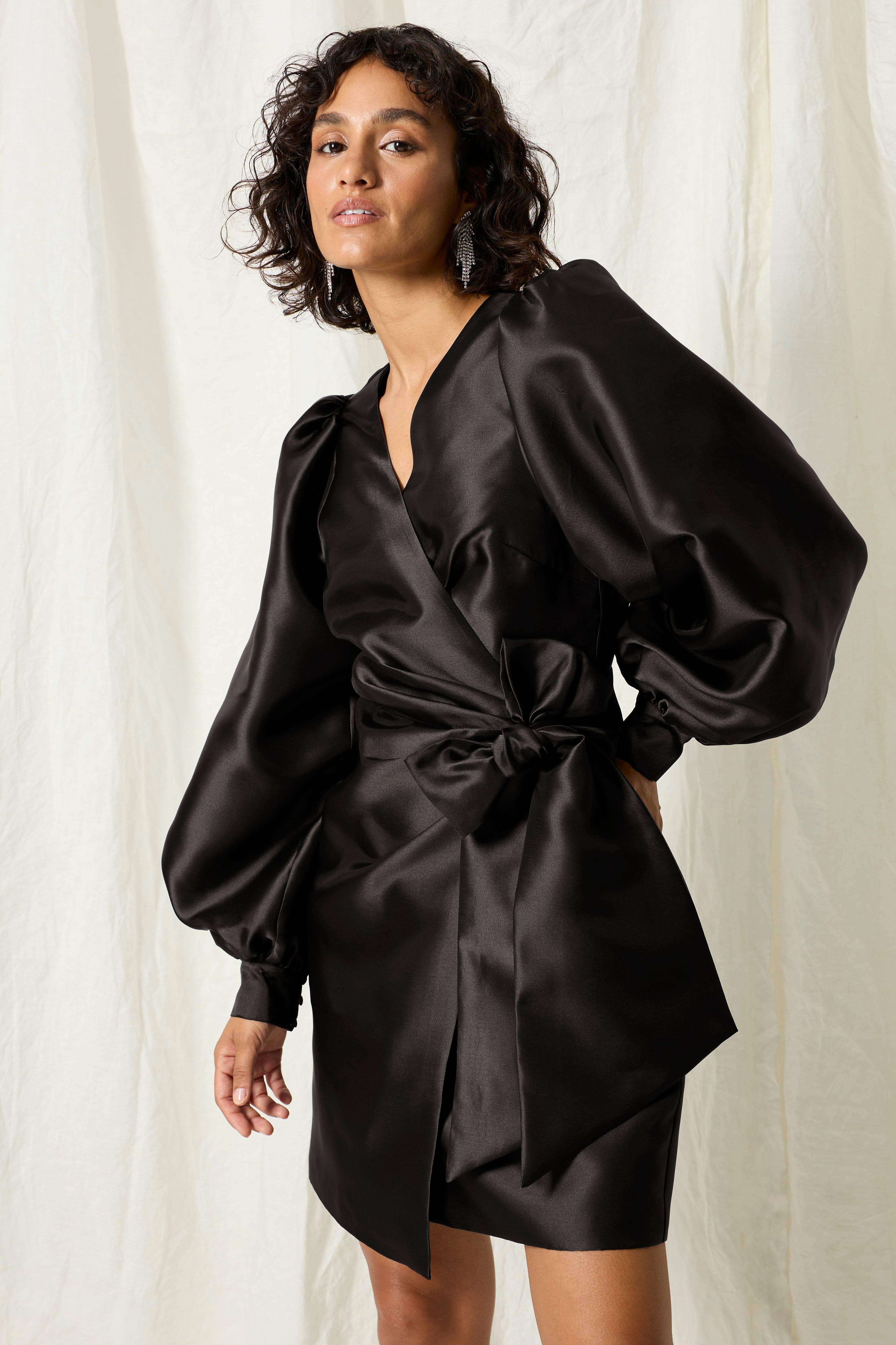 Joelle Kort slå-om kjole i satin med stor sløjfe