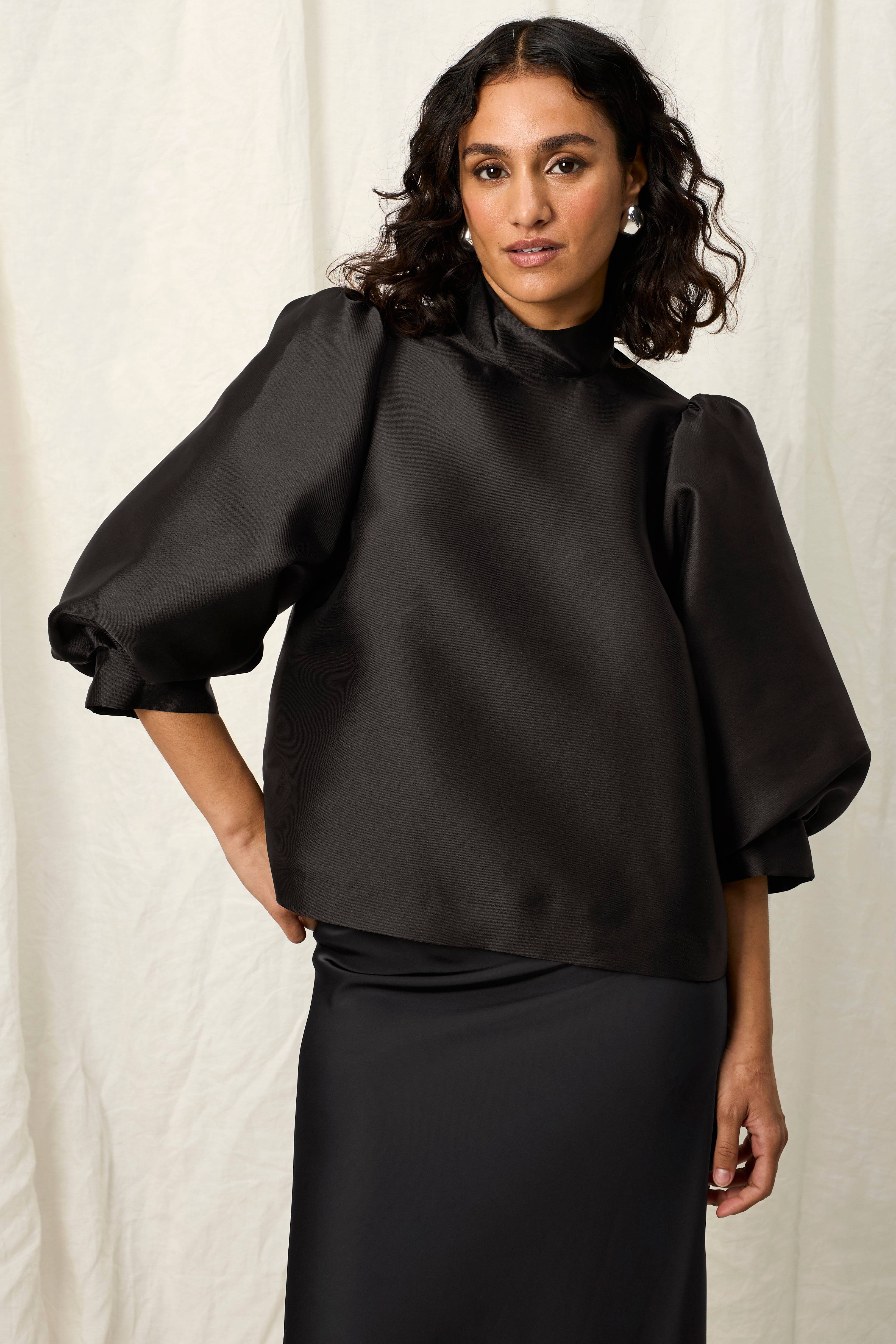 Joelle Satinbluse med høj hals