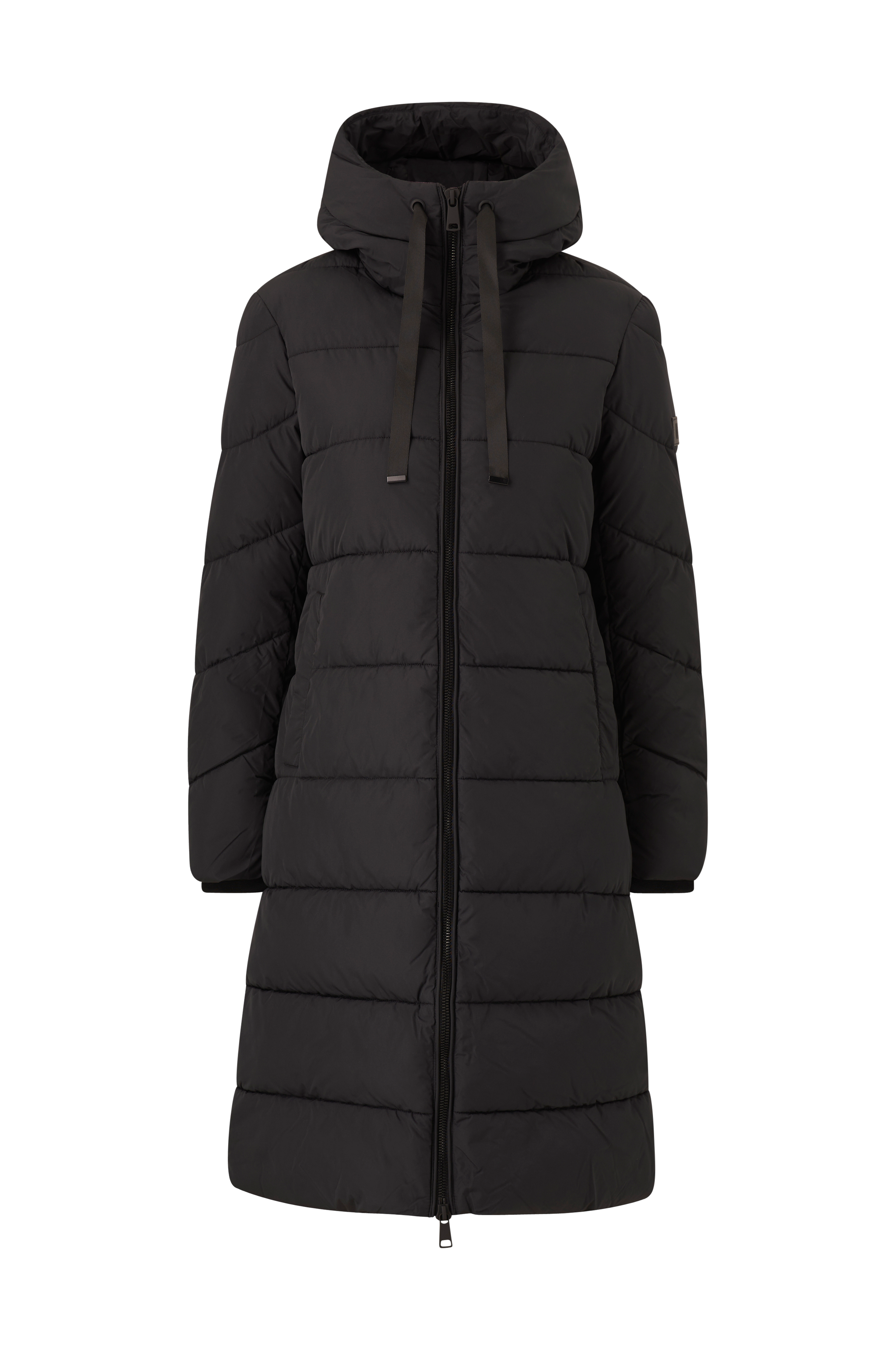 • Foret frakke • To-vejs lynlås • To forlommer • En inderlomme • Fast hætte med træksnørre • Skjult ribmanchet ved manchetterne • Længde: 101 cm i størrelse 36