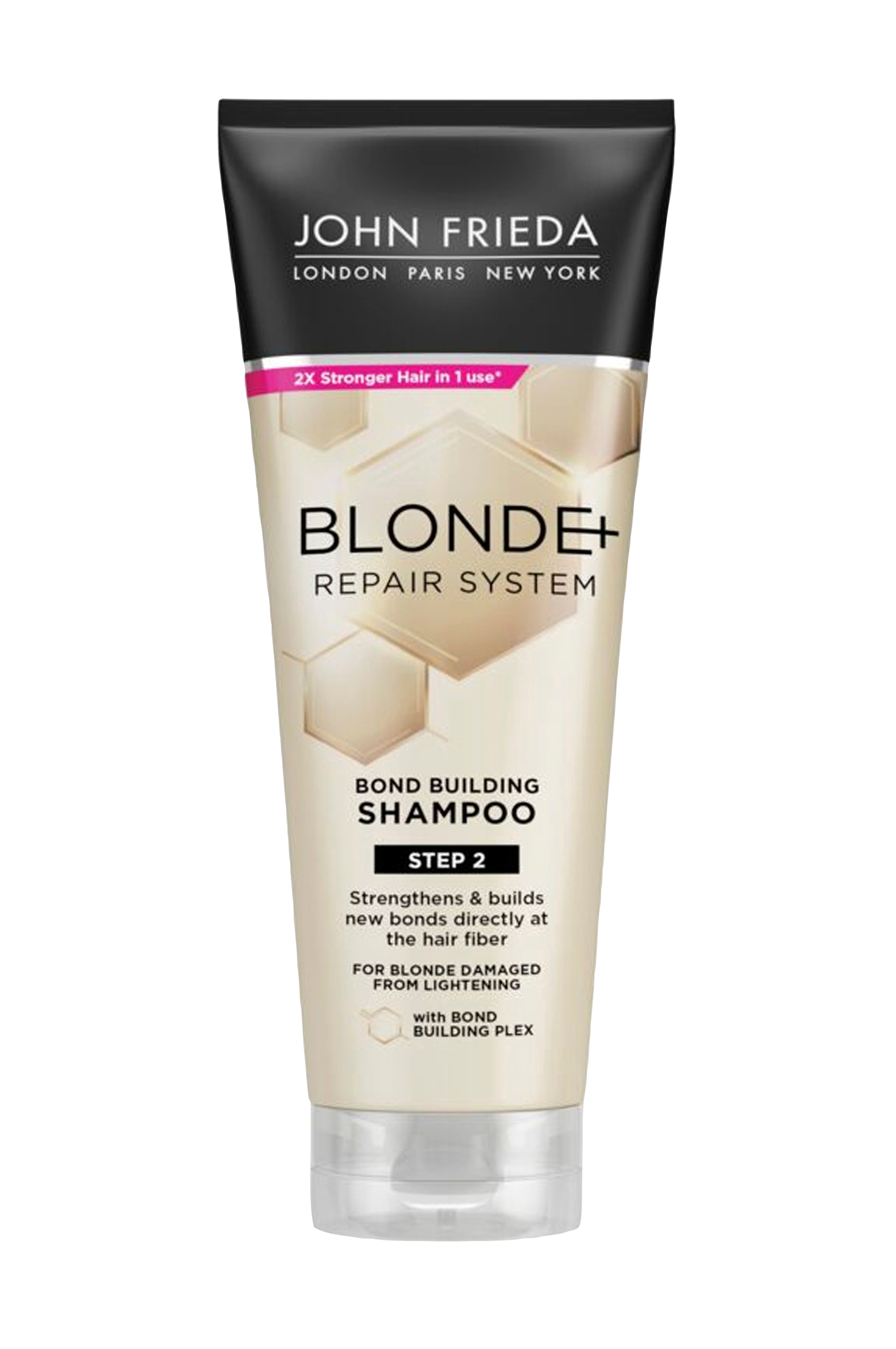 Når du følger vores Blonde+ Repair System og bruger Pre-Shampoo Treatment, Bond Building Shampoo og Bond Building Conditioner sammen, bliver blondt hår dramatisk synligt repareret og 2 x lysere* og 2 x stærkere* ved bare én brug.