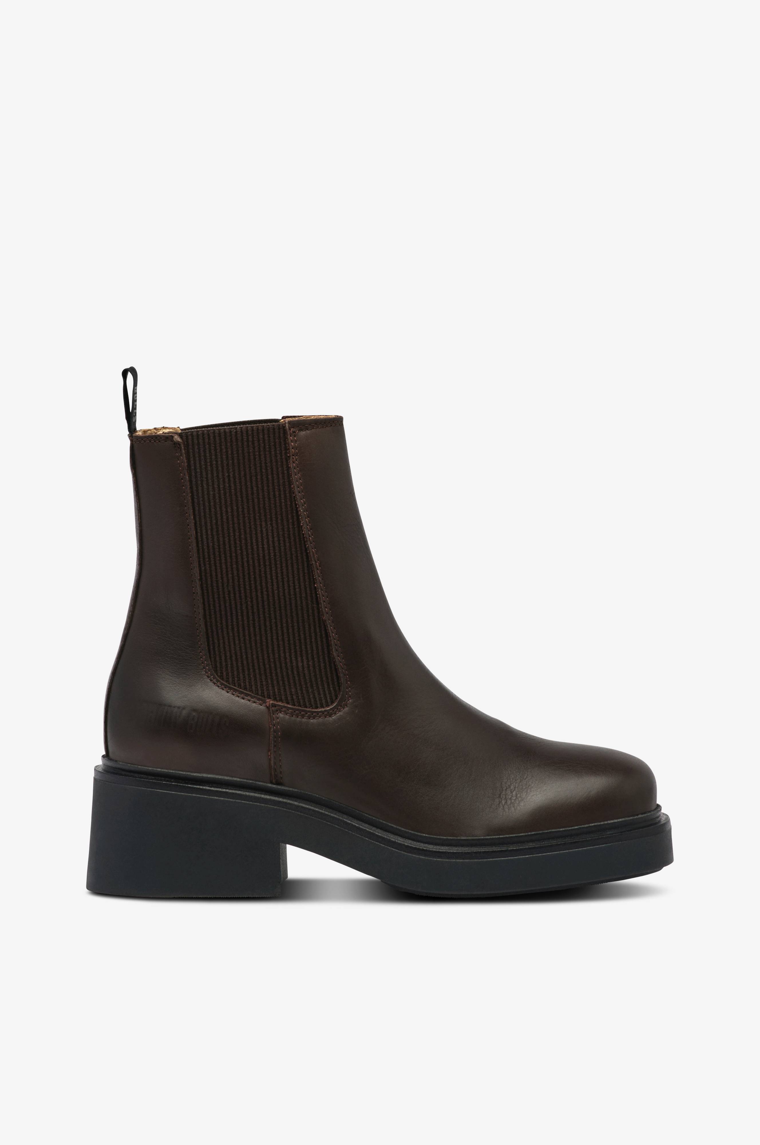 • Boots i læder• Elastiske paneler på begge sider af skaftet• Vævet trækstrop bagpå• For i læder• Ydersål i gummi• Hælhøjde: 5,5 cm• Skafthøjde: 15 cm i str. 37