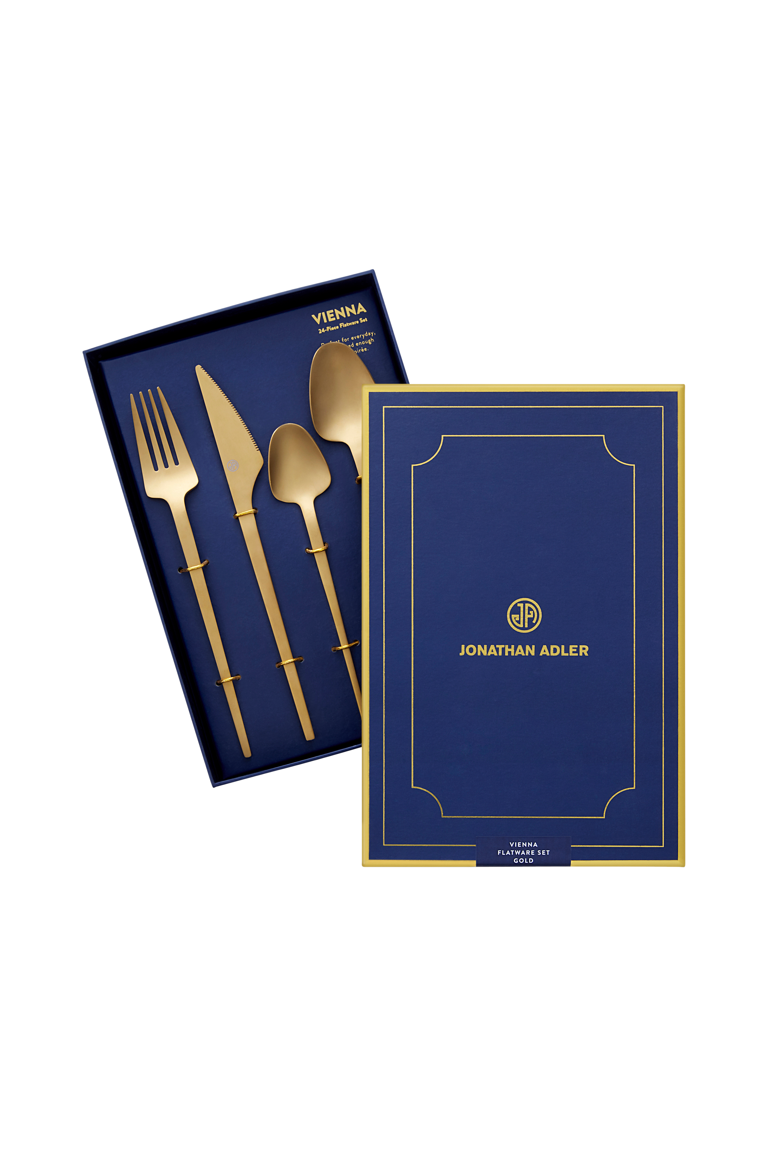 Vienna bestik løfter middagsbordet til nye højder. Elegant bestik, som leveres i en chic indpakning. Sættet består af 24 dele - 6 gafler (21 cm), knive (22 cm), spiseskeer (20 cm) og teskeer (17 cm). Materialet er stål og serien findes i pudset sølv eller børstet guld. Kan vaskes i opvaskemaskine.