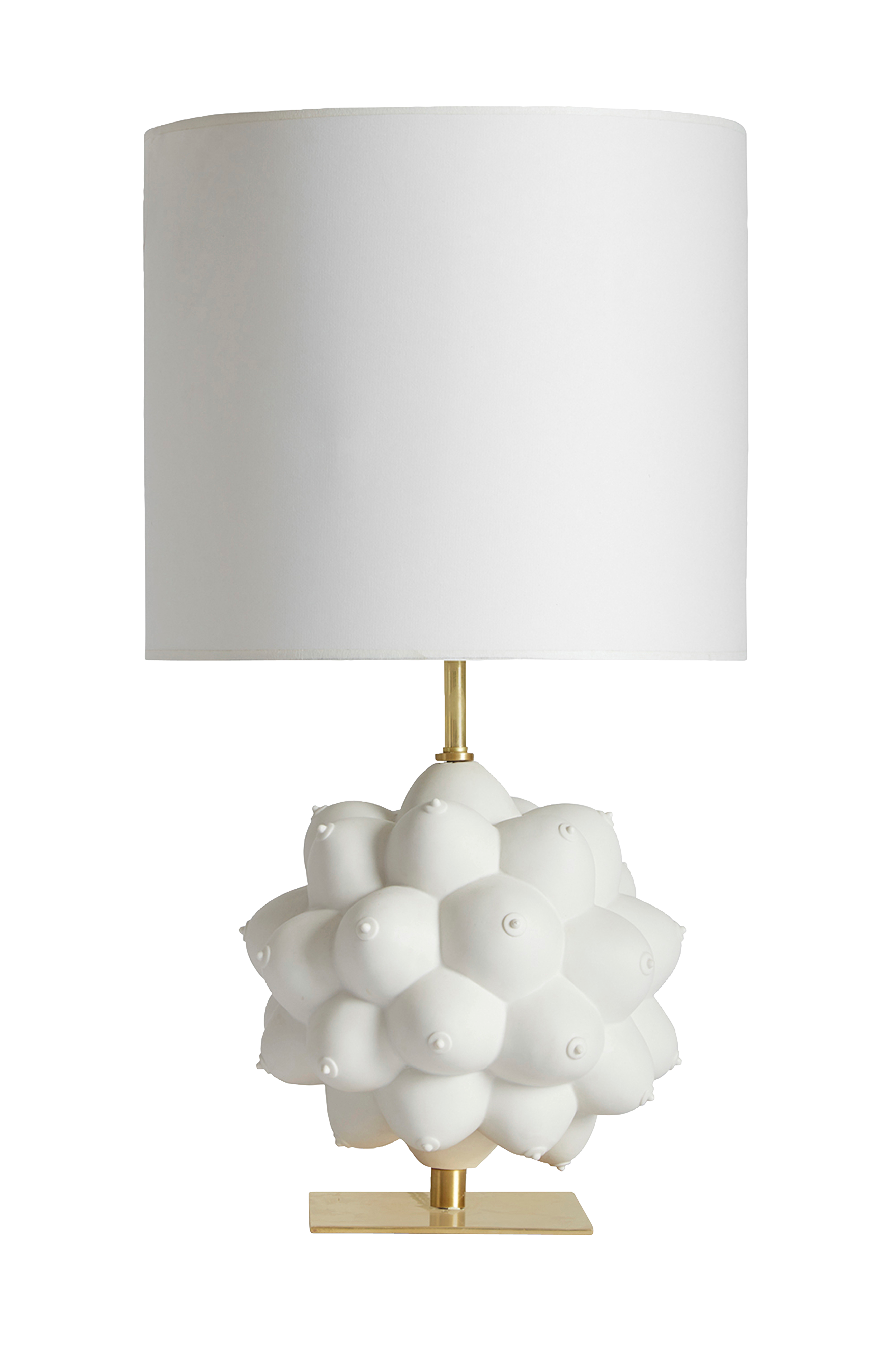 Bordlampe Georgia er en hyldest til provokation. Et kunstværk som toppes med en lampeskærm af papir. Hele lampen hviler på en fod af messing. Dette mønster er inspireret af den amerikanske kunstner Georgia O'Keeffes, hustru og muse for Alfred Stieglitz. Lampefoden er i mat keramik. Lampefodens diameter er 25,5 cm og lampeskærmen 30,5x28 cm. Total højde 56 cm.