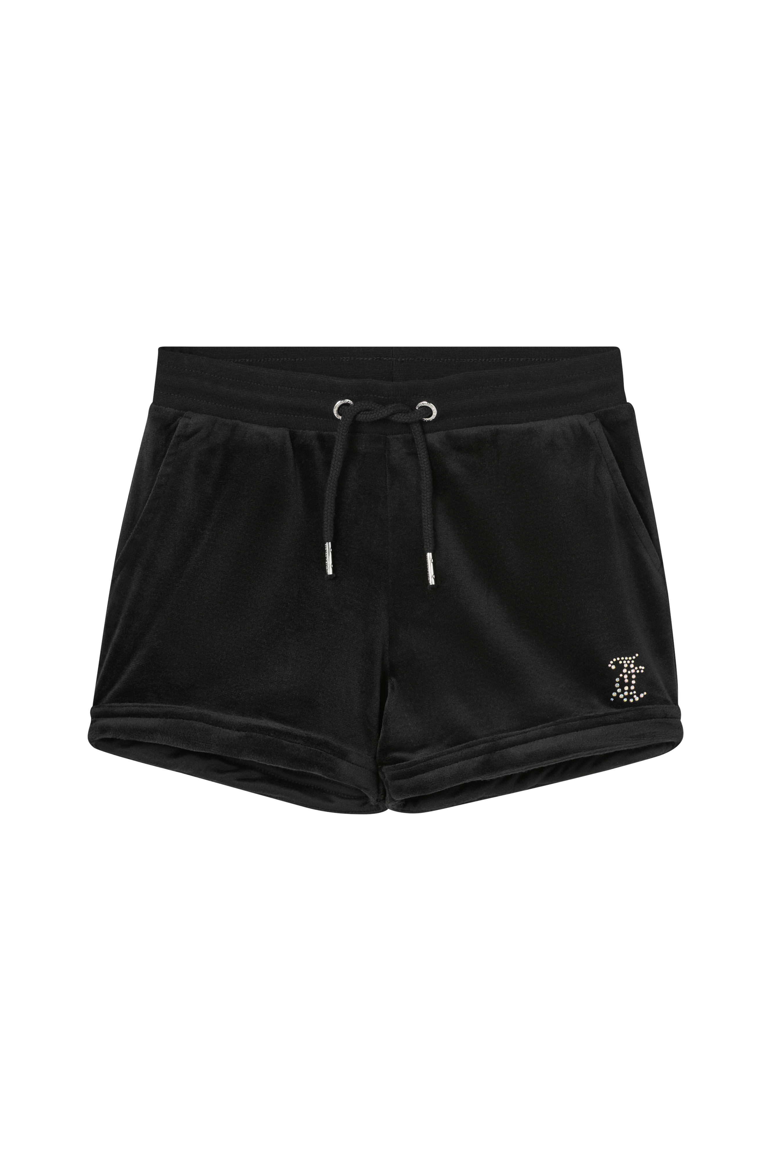 • Shorts i blød velour• Ribbet, elastisk talje med træksnørre• Sidelommer• En baglomme• Motiv med funklende rhinstene på det ene ben