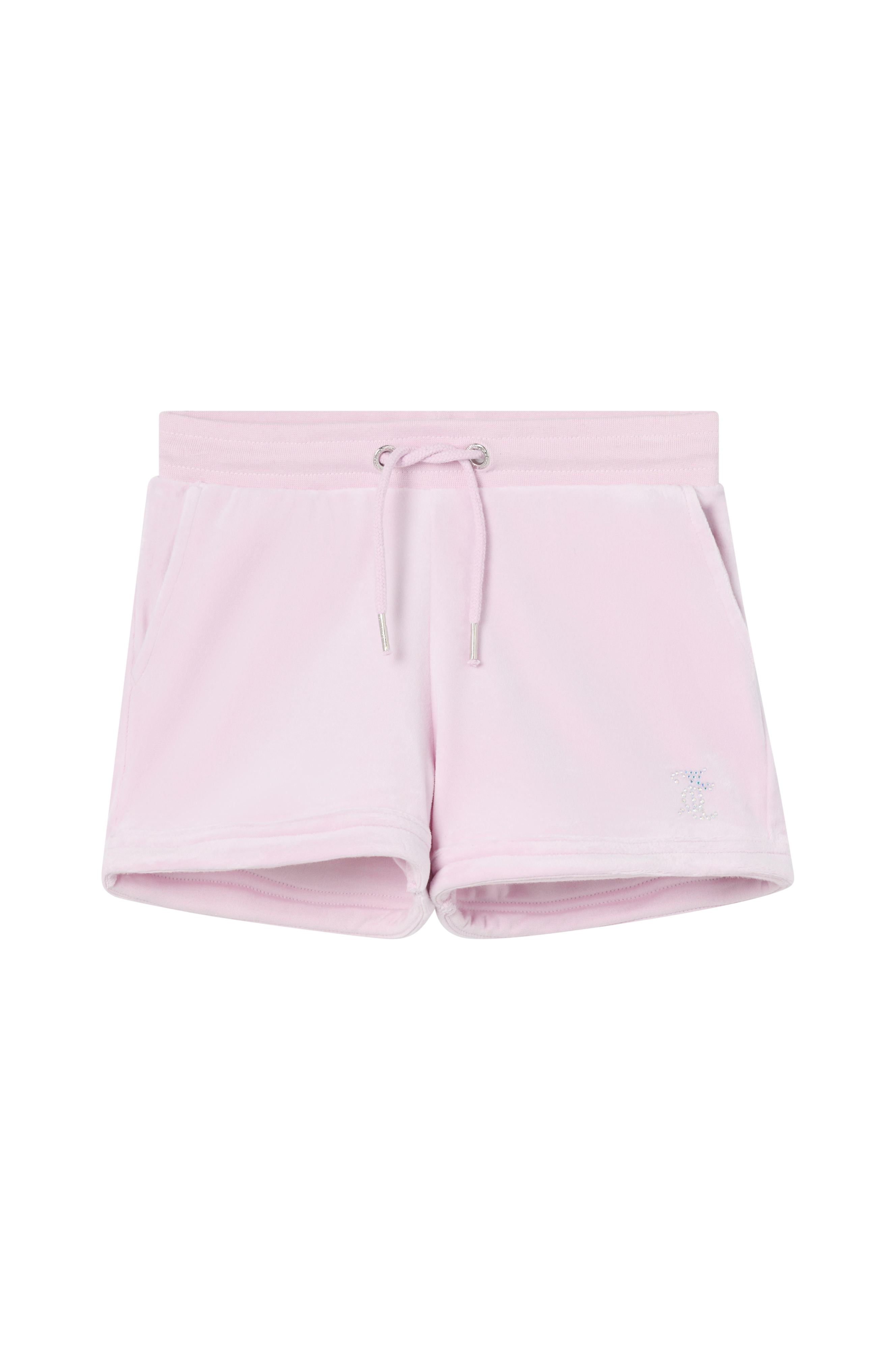 • Shorts i blød velour• Ribbet, elastisk talje med træksnørre• Sidelommer• En baglomme• Motiv med funklende rhinstene på det ene ben