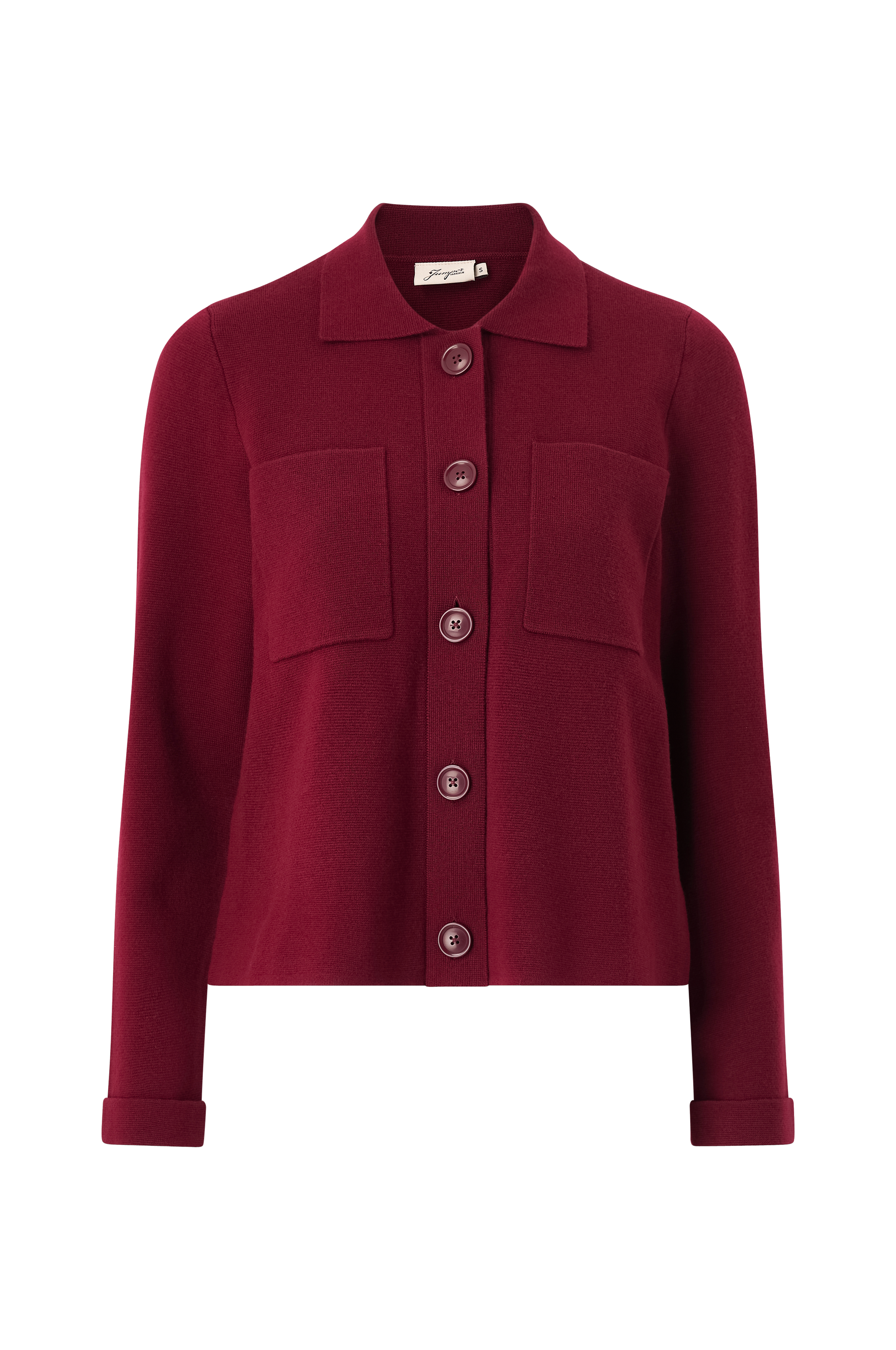 • Cardigan i uld og bomuldsblanding med krave• Firkantet model• Lange ærmer med foldede ærmeafslutninger• Brystlommer• Knapper foran