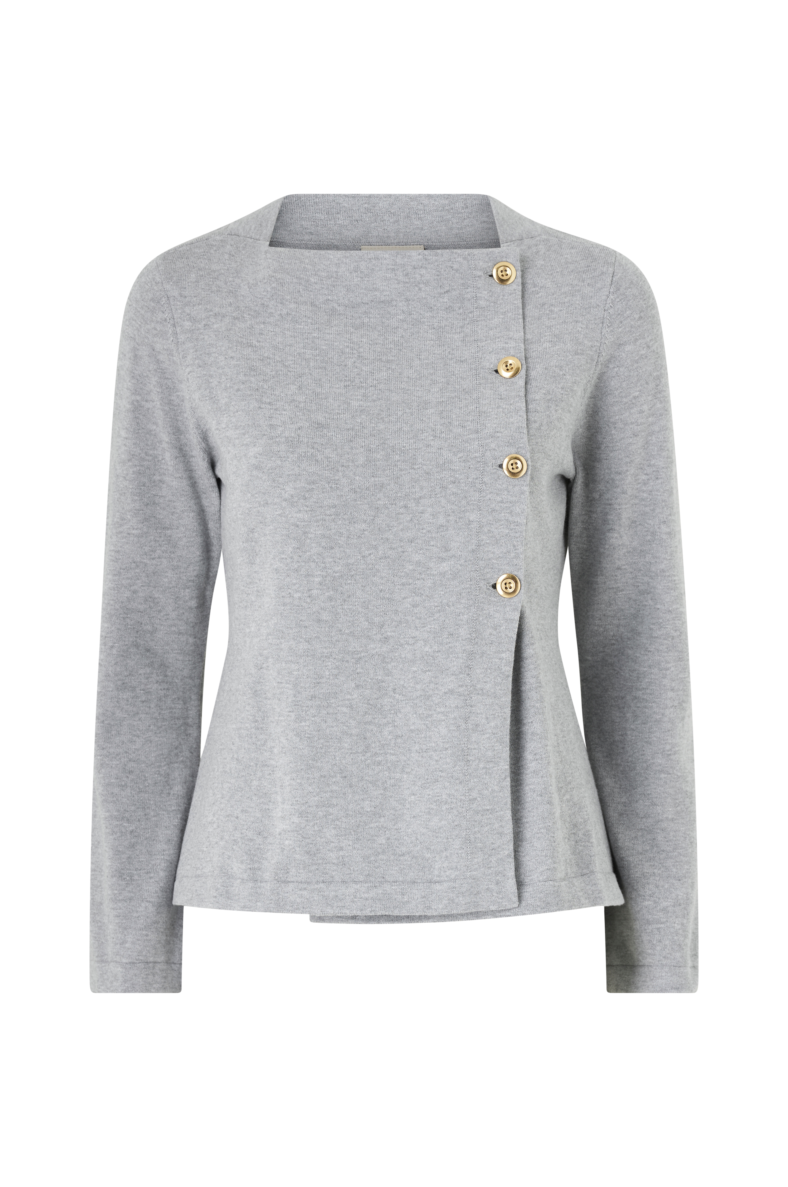 • Kort model• Knapstolpe i siden med guldfarvede metalknapper• Lange, noget udsvingende ærmer