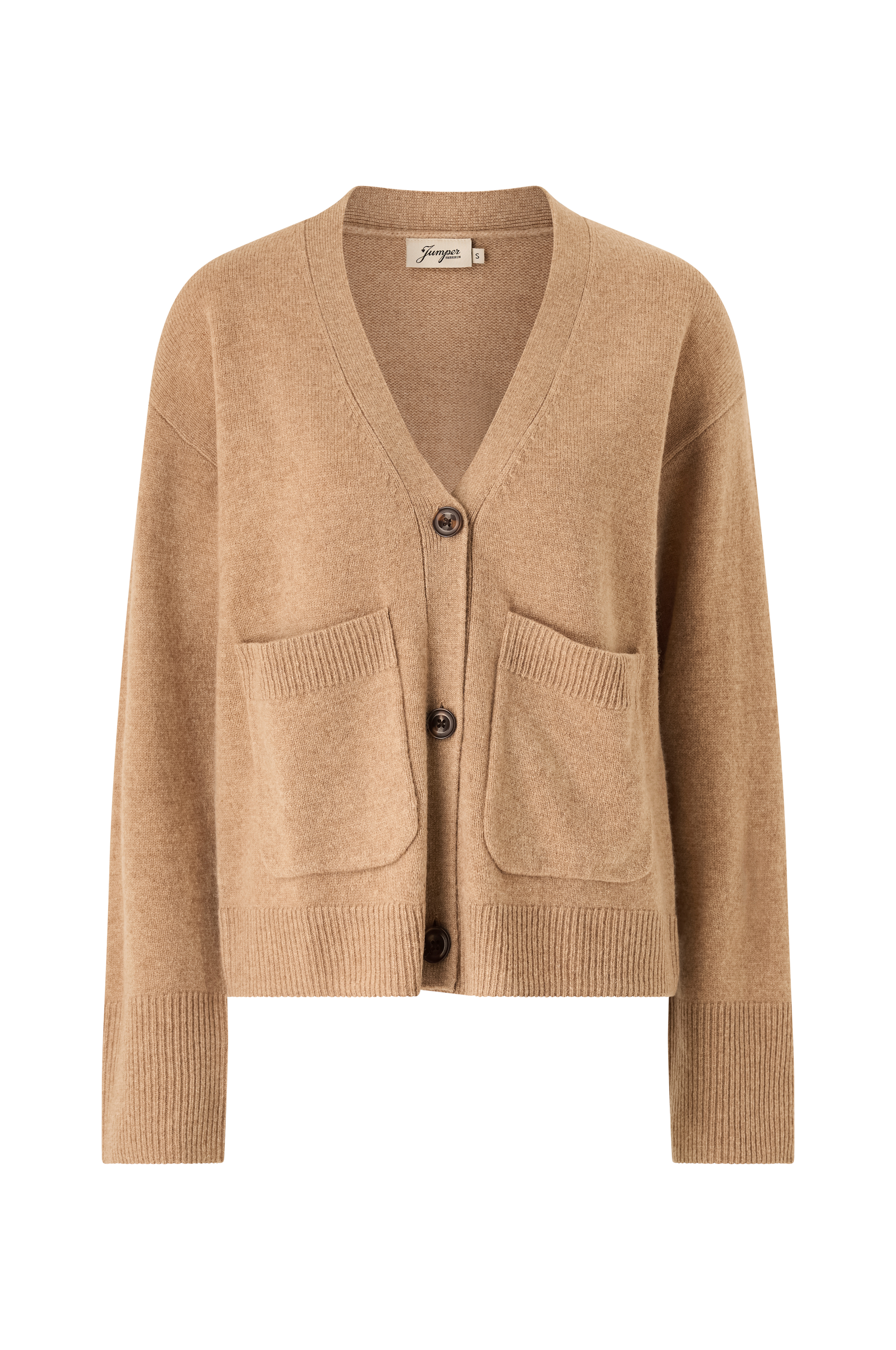 • Strikket cardigan med v-udskæring• Nedsænkede skuldre• Lange ærmer• Knaplukning• To lommer• Ribstrik ved manchetterne og ved nederste kant• Afslappet pasform