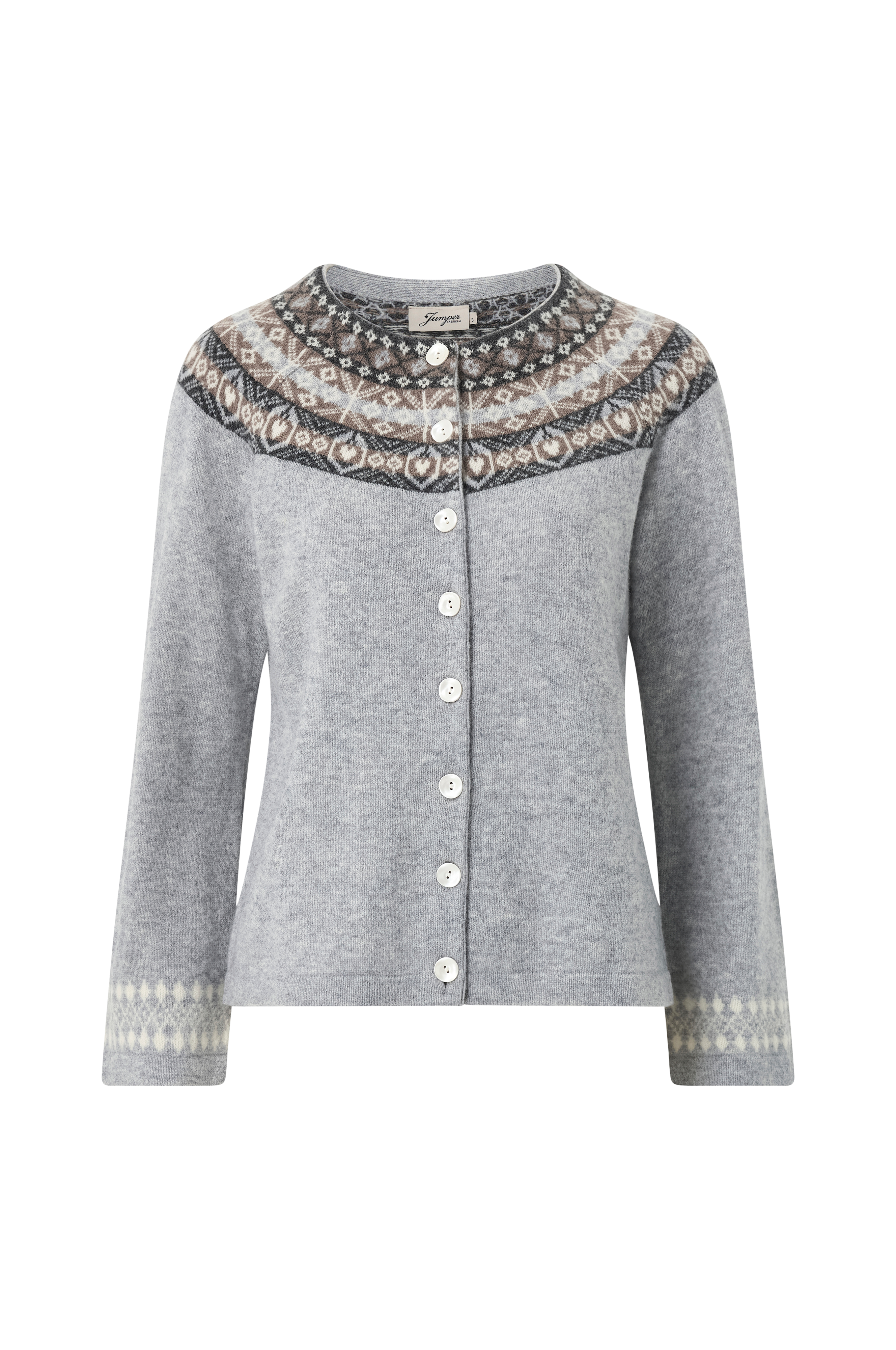 • Blød cardigan i uld• Rund halsudskæring• Mønsterstrikning på toppen og ved ærmeafslutningerne• Lange ærmer med svaj• Dekorative knapper hele vejen frem• Ribstrik ved manchetterne og ved nederste kant