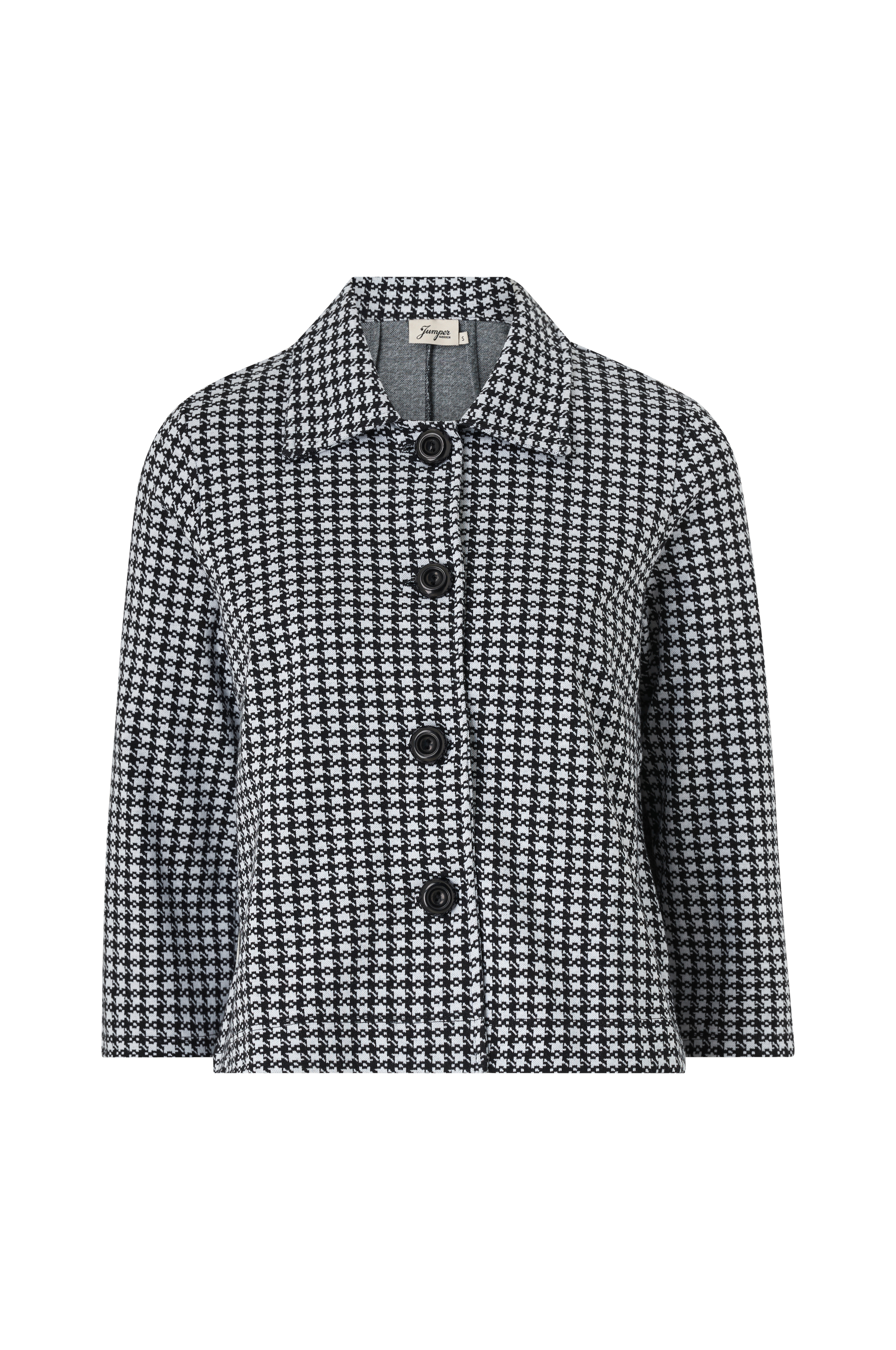• Kort jakke i bomuldsblanding med hundetandsmønster• Lige model• Knaplukning• Strækkvalitet• Længde: 55 cm i størrelse S