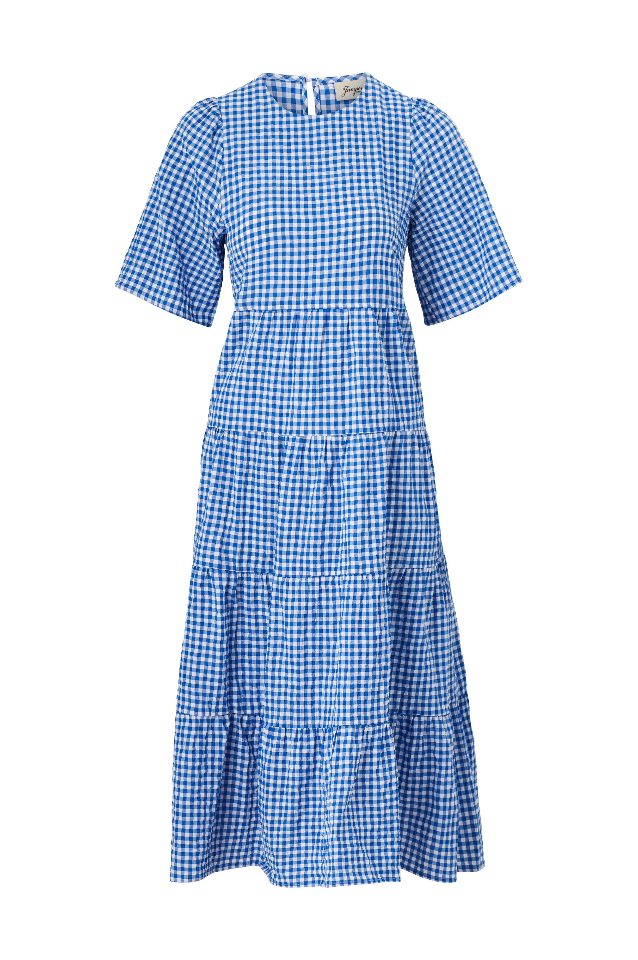 • Lang model med svaj i crepe• Rund hals med knap i nakken• Kort ballonærme• Markeret talje• Nederdel med svaj med volanter• Længde: 123 cm i størrelse 36