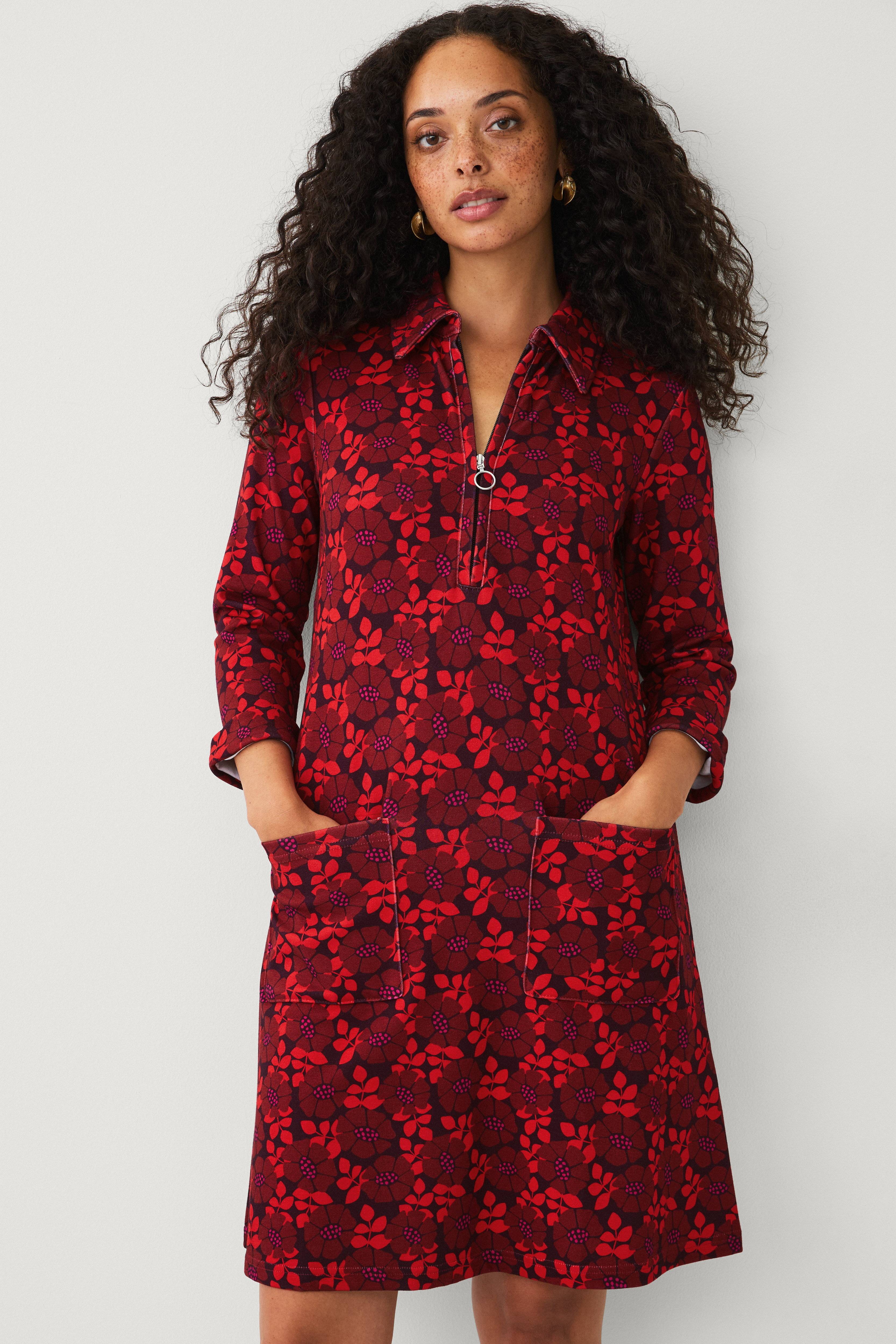 • Blød kjole i viskoseblanding• Skjortekrave• Halv lynlås• 3/4 lange ærmer• To lommer• Nedre del med svaj• Normal pasform• Længde: 92 cm i størrelse S