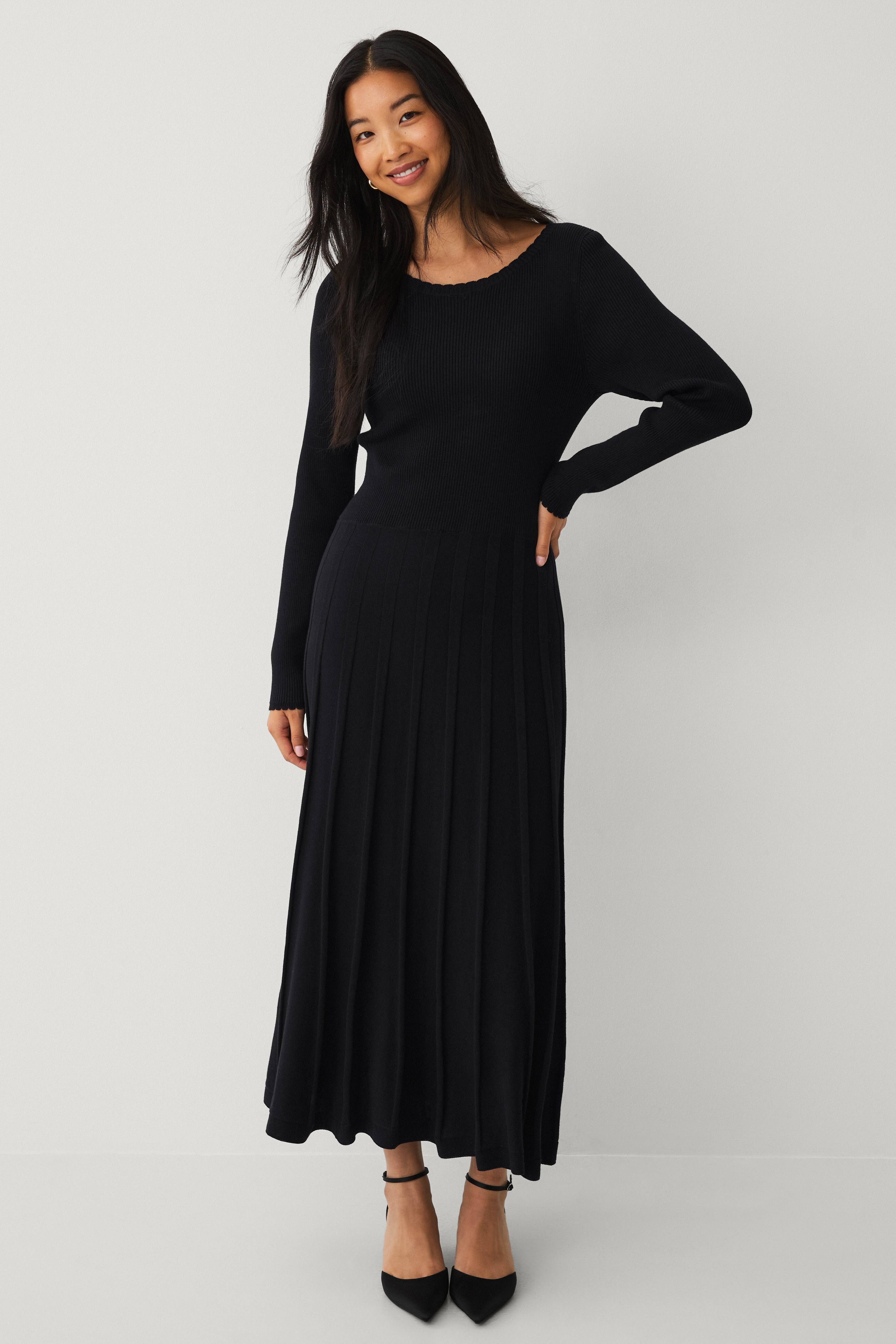 • Fintstrikket kjole i bomuld• Rund, bred halsudskæring• Ribstrikket øvre del• Plisseret nederdel• Lange ærmer• Bølgeformer på halsen og ved manchetterne• Længde: 128 cm i størrelse S