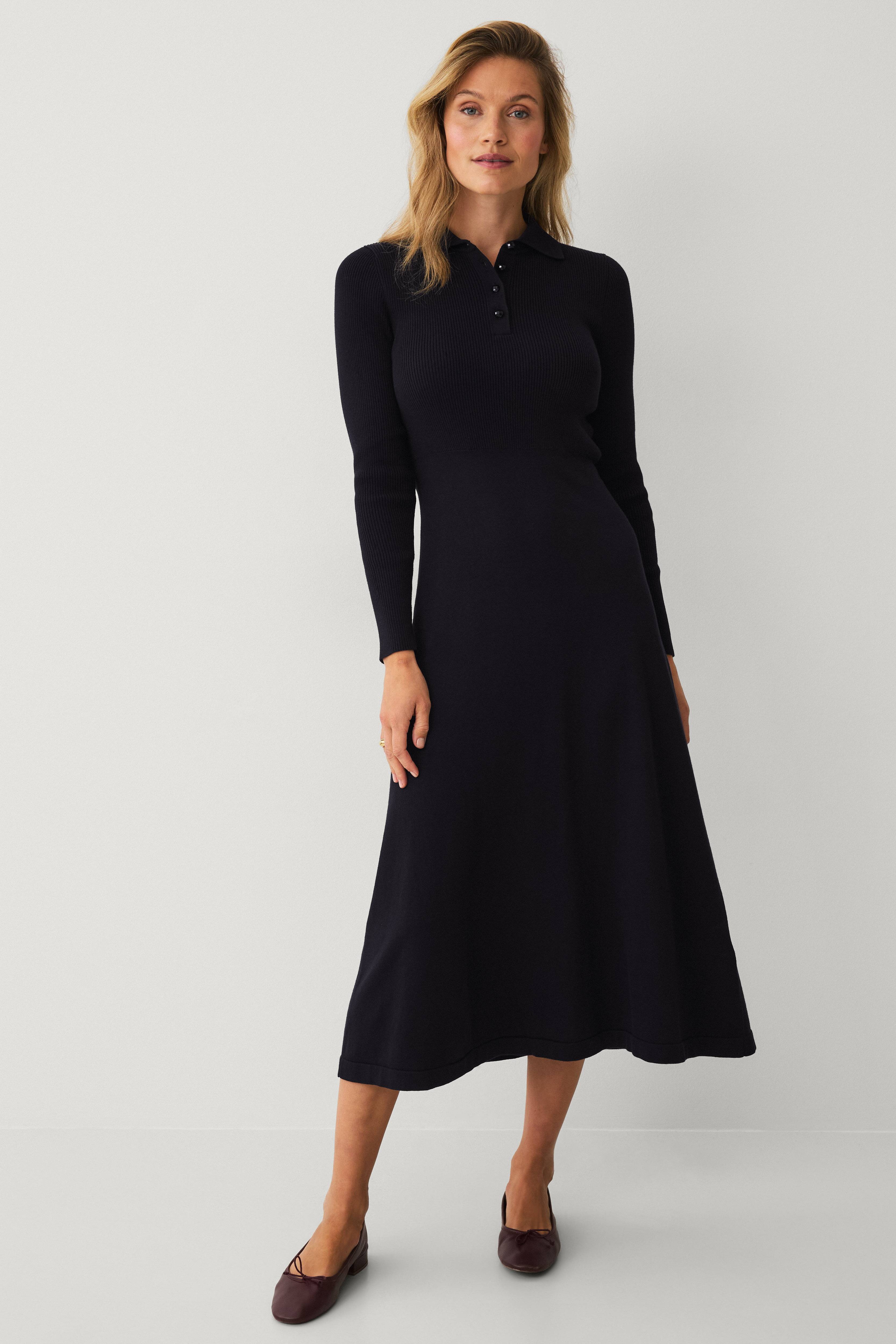 • Fintstrikket kjole i bomuld• Ribstrikket krave• Knapstolpe på toppen med dekorative knapper• Lange ærmer• Ribstrik på toppen• Let udsvingende nederdel• Længde: 129 cm i størrelse S
