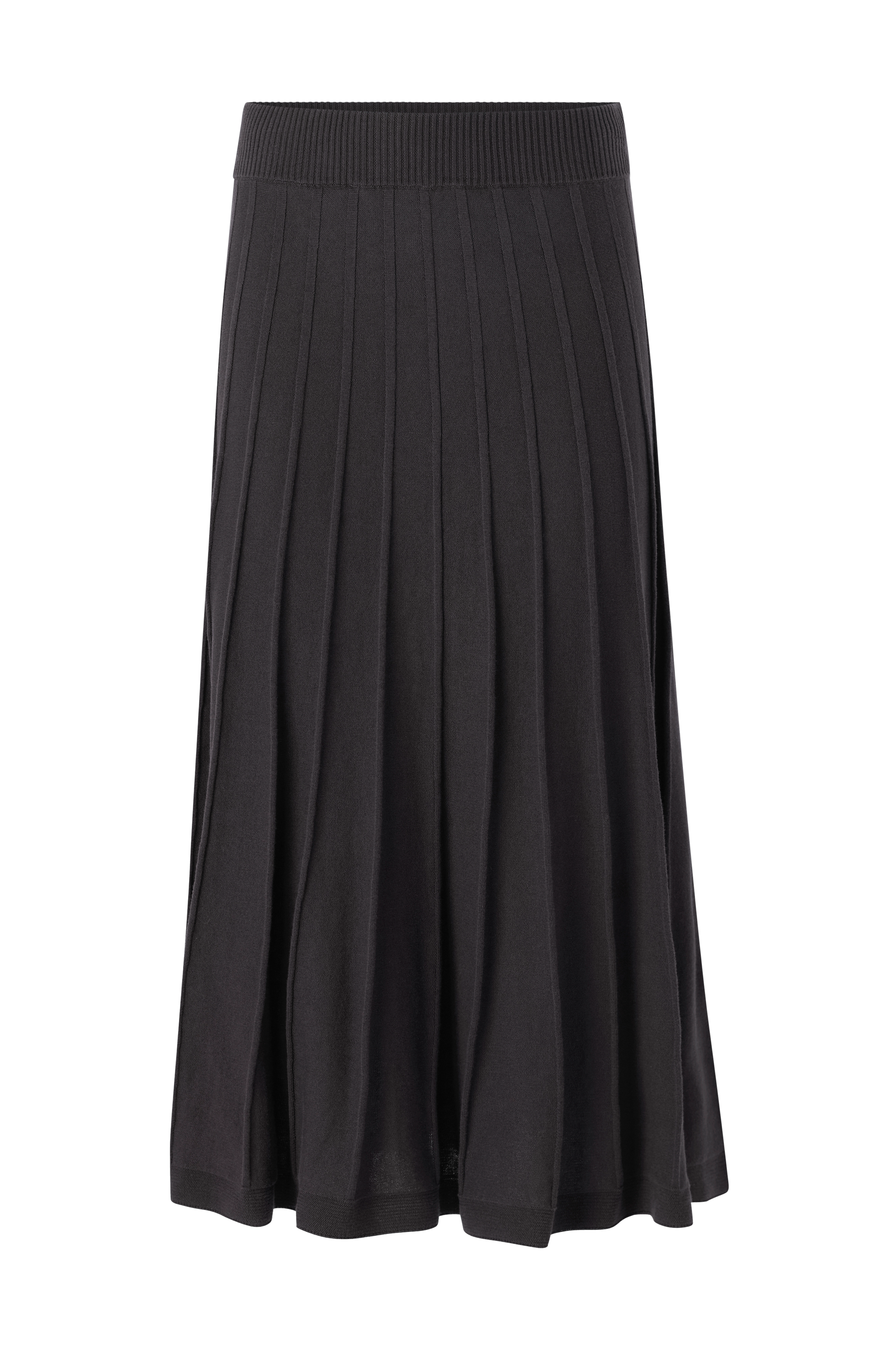 • Bred, klokkeformet model med strukturstrikkede striber• Ribstrikket linning med indvendig elastik• Længde: 83 cm i størrelse S