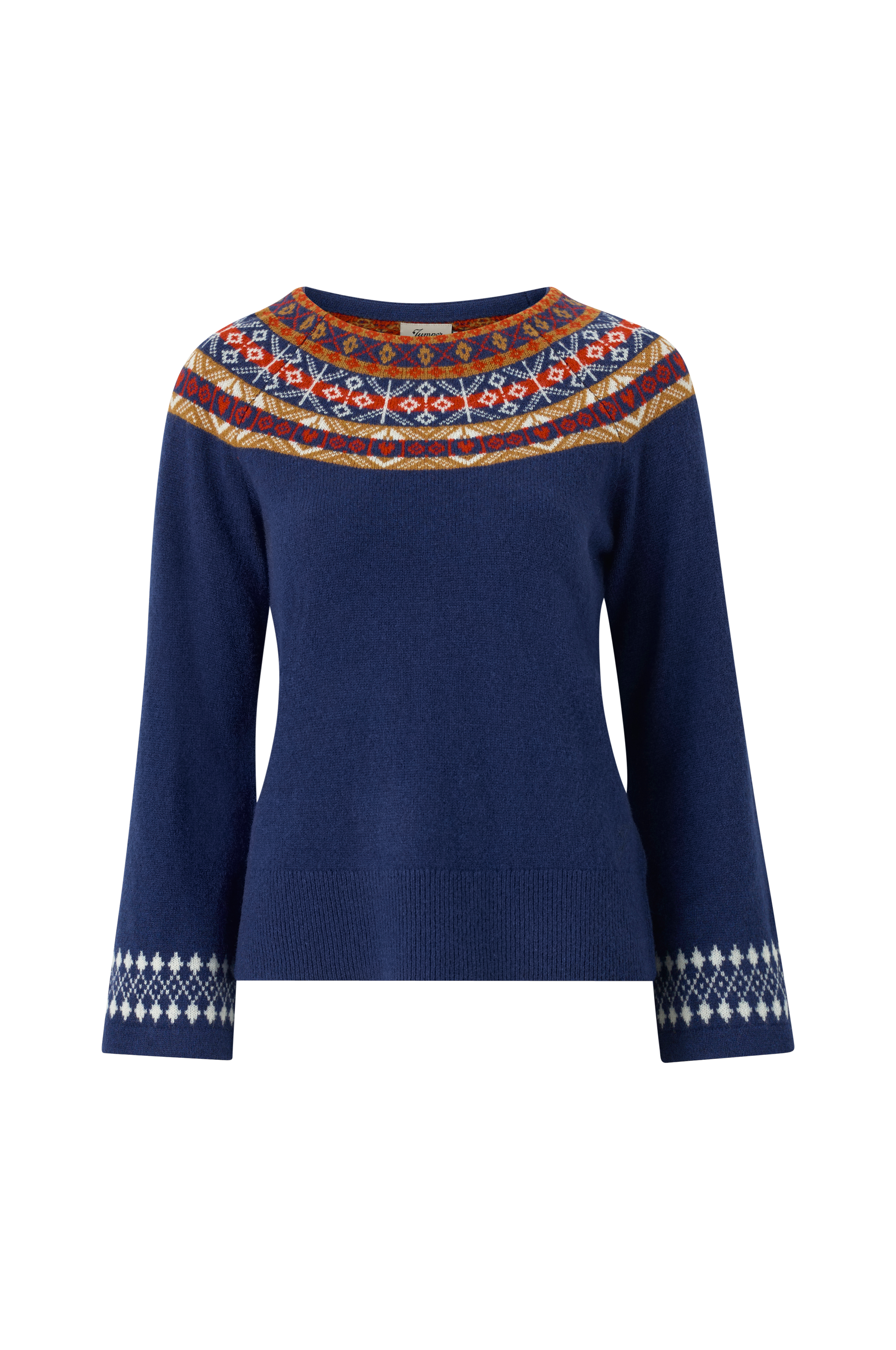 • Lige model• Afrundet mønsterstrikning på toppen• Rund hals• Raglanærme med svaj• Ribstrik ved nederste kant
