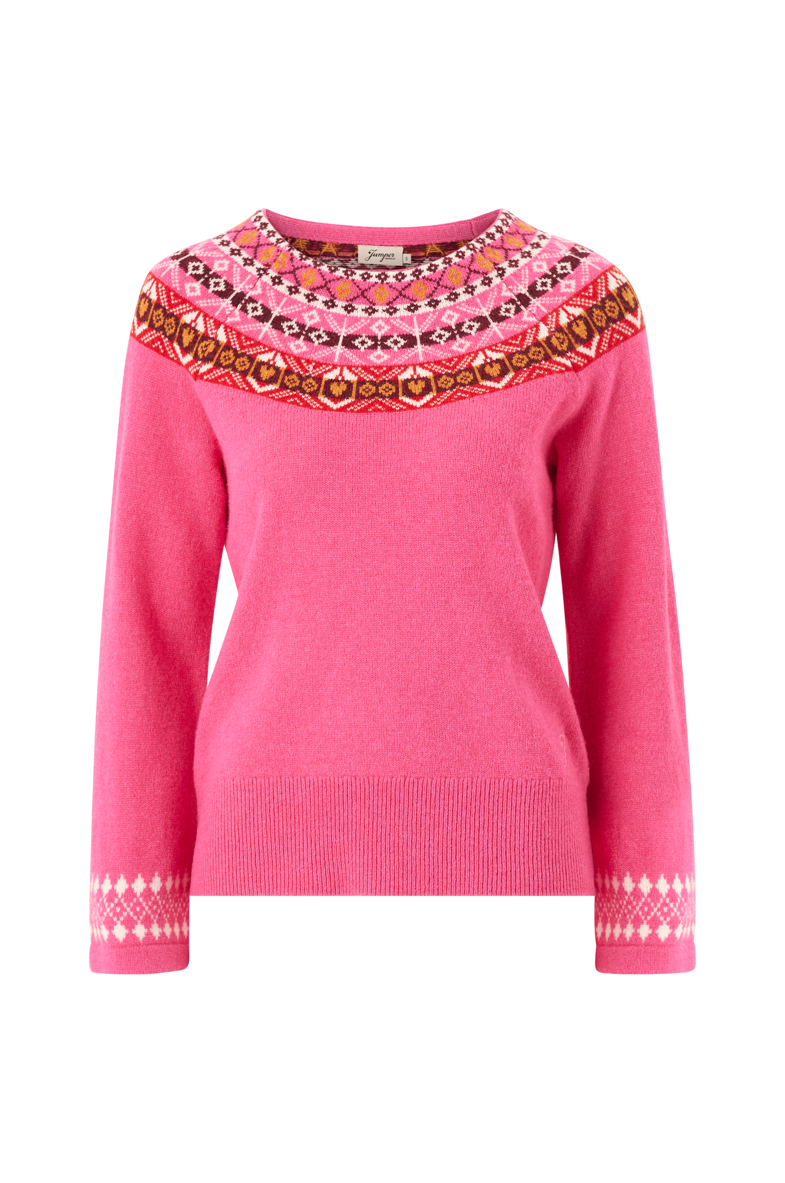 • Lige model• Afrundet mønsterstrikning på toppen• Rund hals• Raglanærme med svaj• Ribstrik ved nederste kant