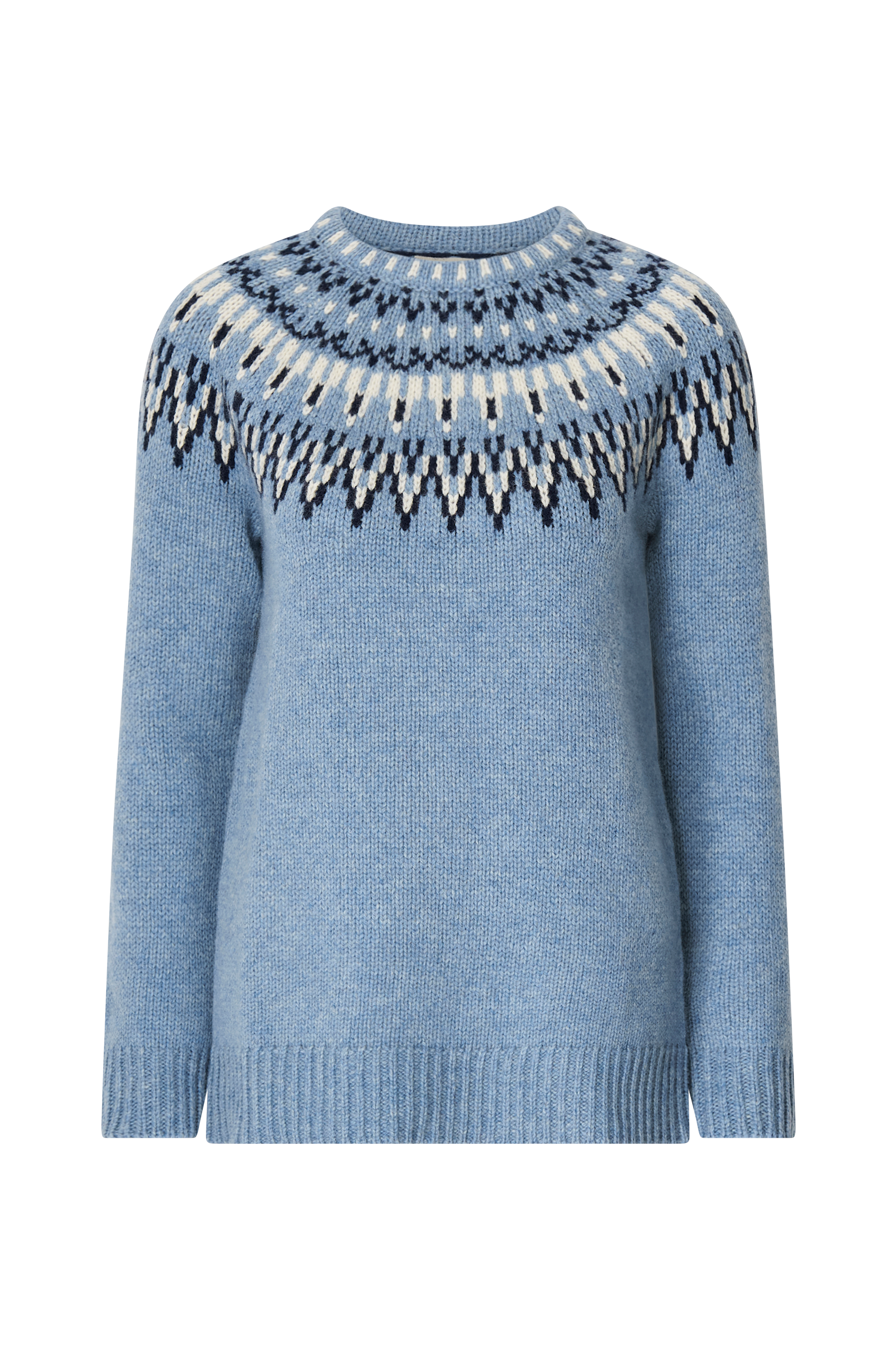 • Klassisk, strikket trøje i uld• Mønsterstrikket linning• Ribstrik nederst og ved manchetterne• Lige, bred pasform