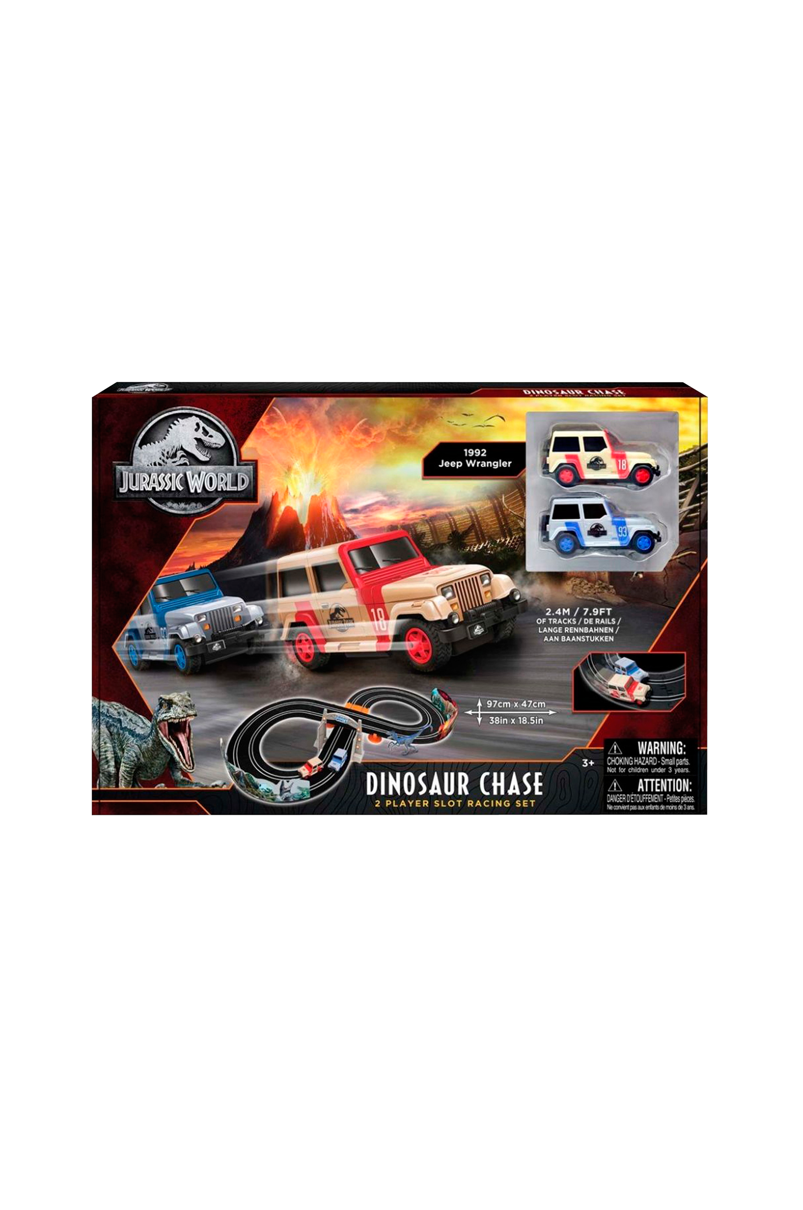 Gør dig klar til mere spænding og eventyr med Jurassic World racerbanen! Dette sæt indeholder 2 køretøjer, 2 hastighedskontroller og 2,4 meter bane.