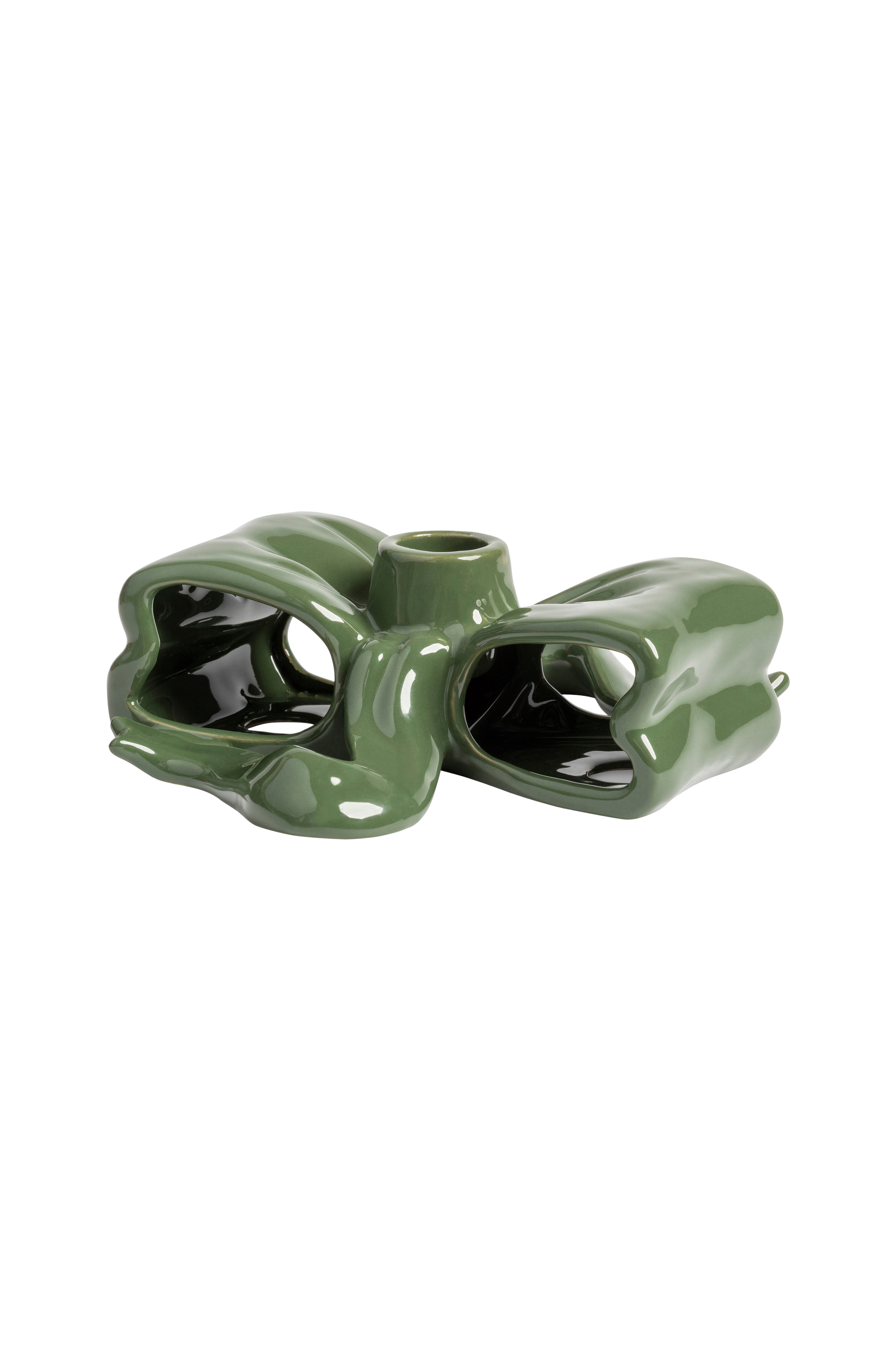 Lysestage med bånd, fremstillet af stentøj. Tørres af med en fugtig klud til rengøring.