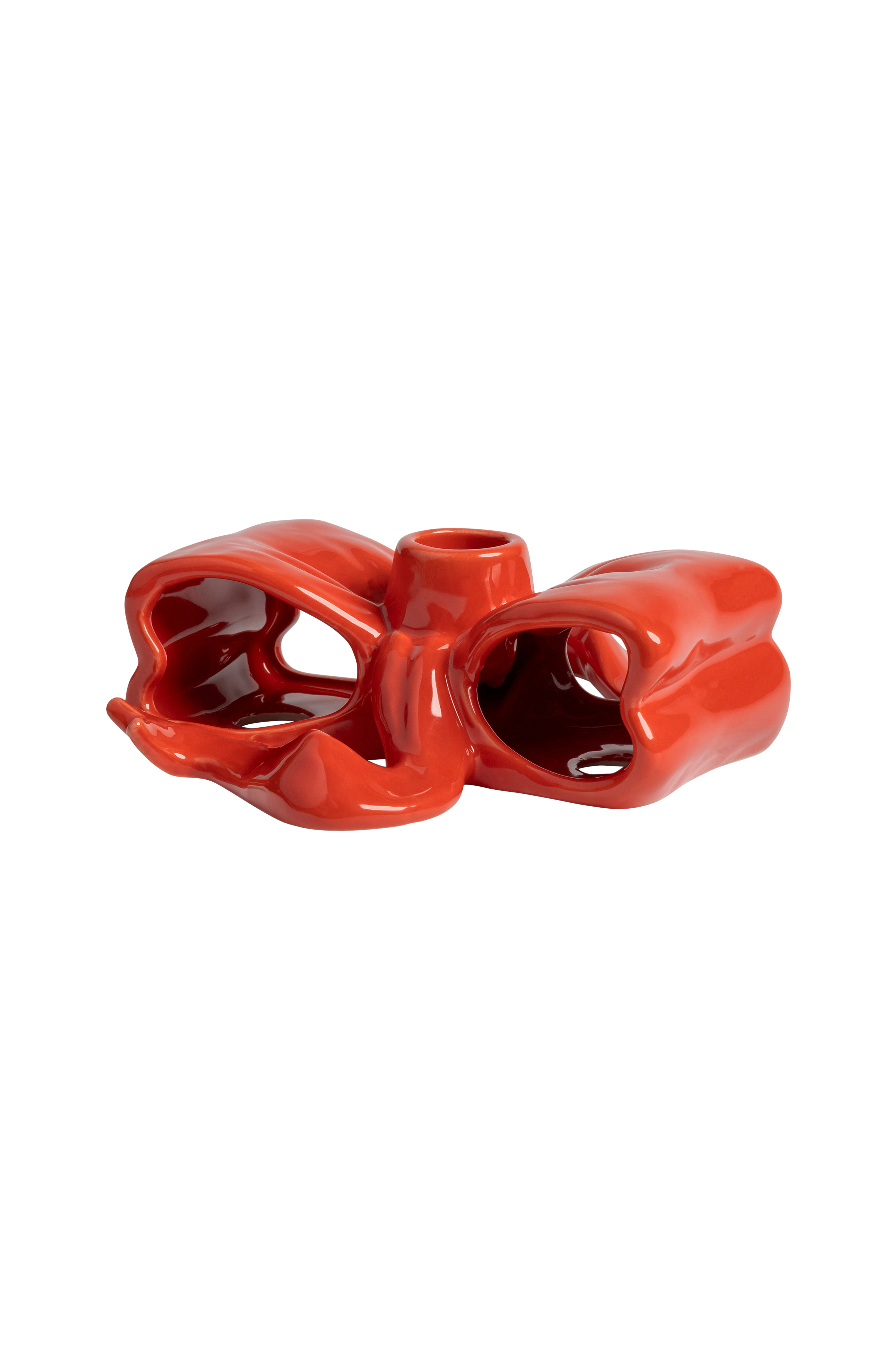 Lysestage med bånd, fremstillet af stentøj. Tørres af med en fugtig klud til rengøring.