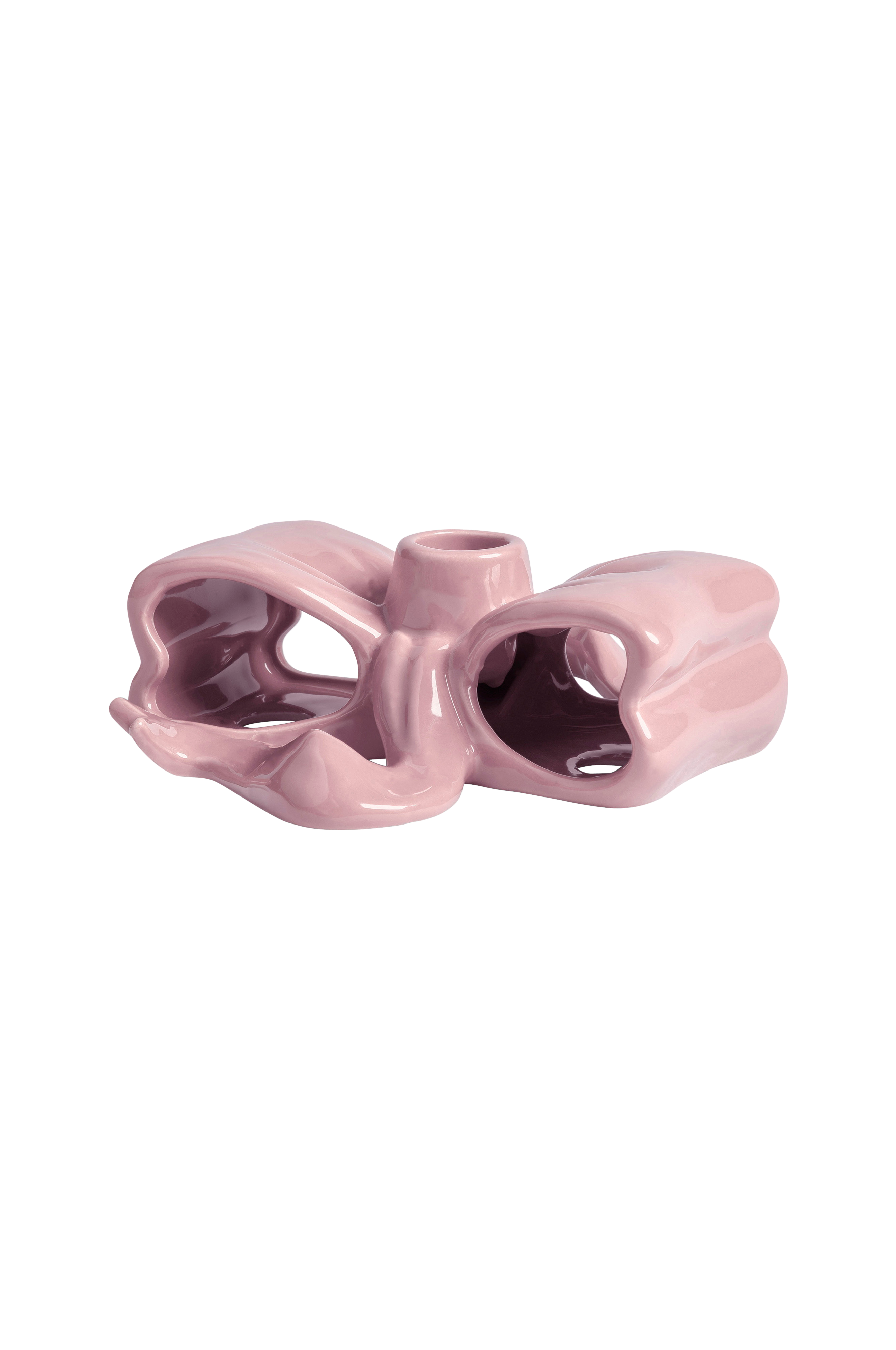 Lysestage med bånd, fremstillet af stentøj. Tørres af med en fugtig klud til rengøring.