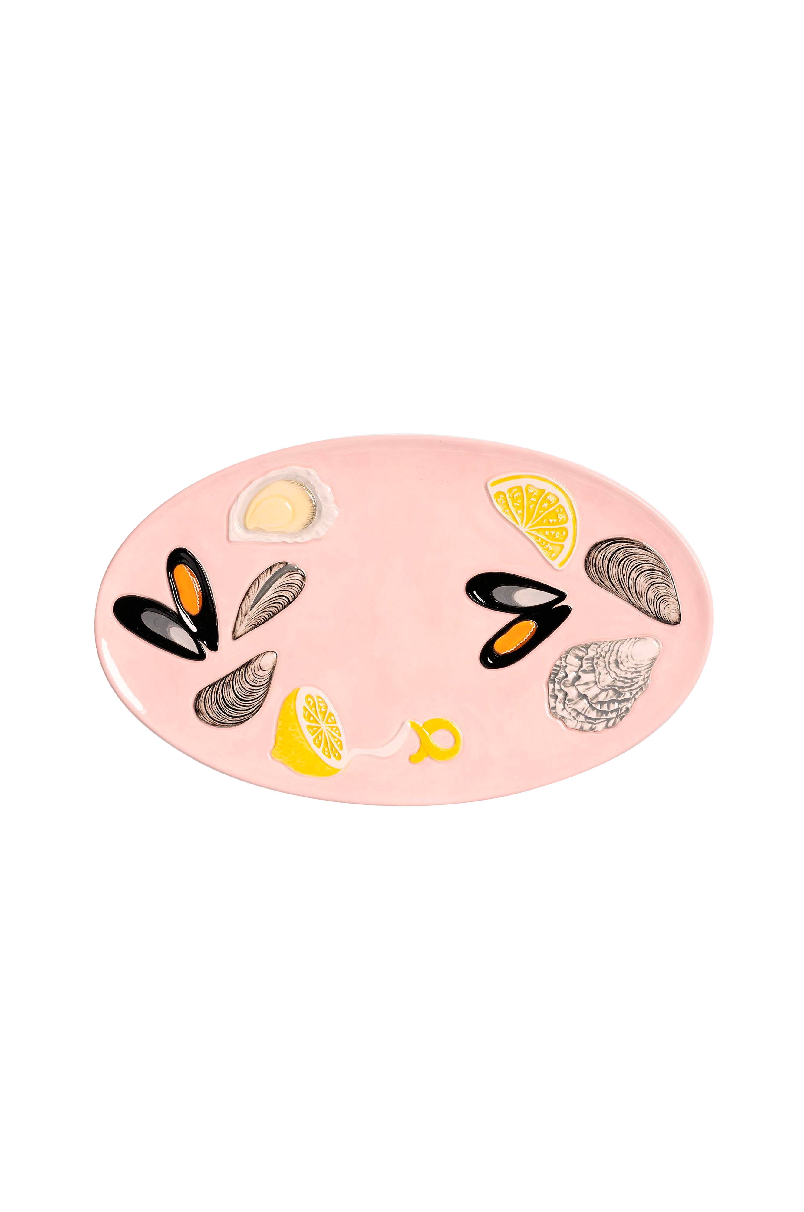 Det farverige serveringsfad De la mer med østersmotiv tager dig med til &K's undervandsverden. Fadet har fantastisk, håndmalet motiv med subtile detaljer, der giver et luksuriøst look. Frugter og grøntsager, du elsker, kommer virkelig til deres ret på dette fad. Men det er også fantastisk som bord- eller vægdekoration. Tåler maskinopvask. Fremstillet af Dolomit.