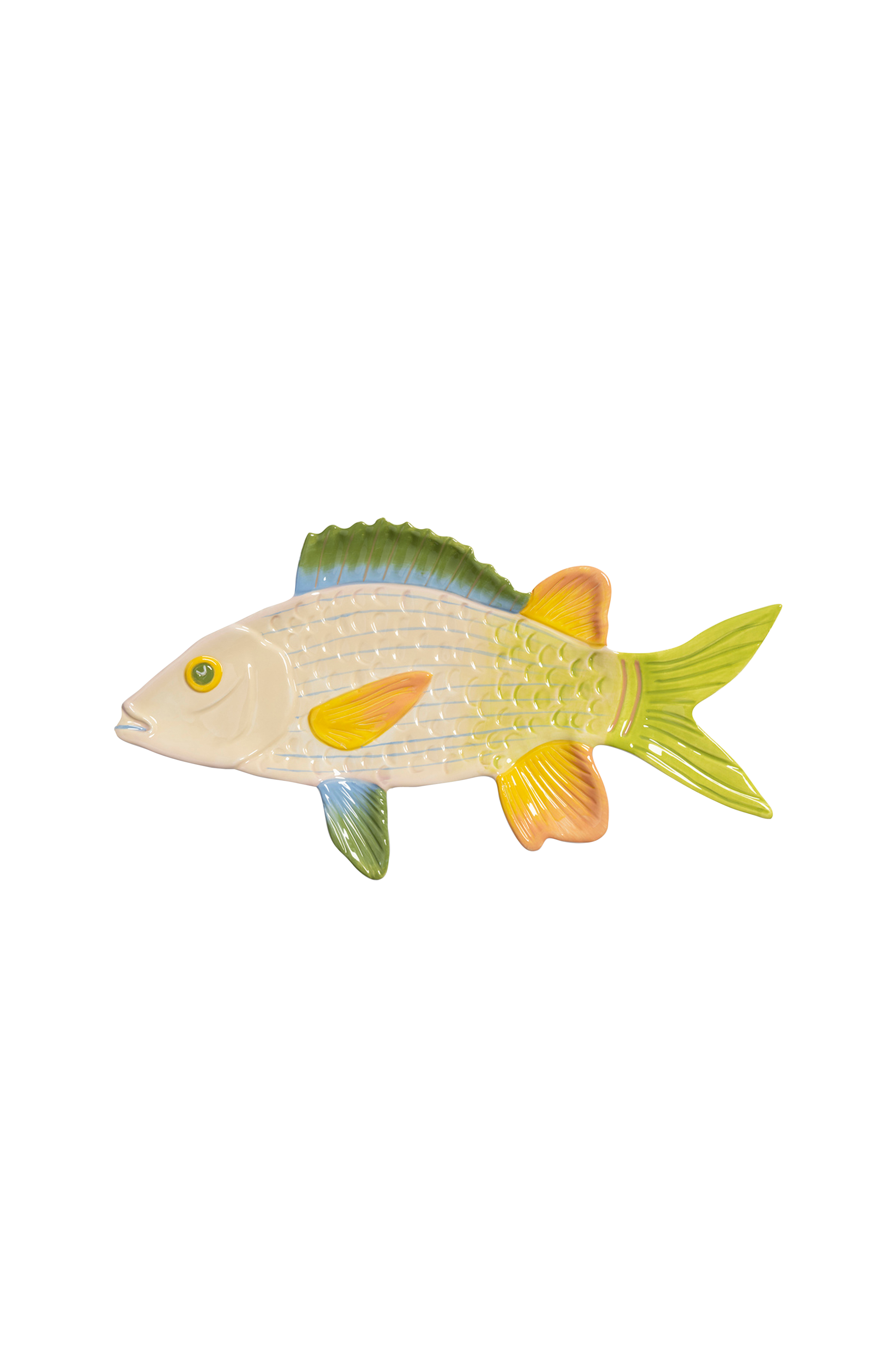 Denne dekorative fisketallerken er designet til at sætte et muntert præg på dit bord. Tallerkenen er håndmalet i den smukkeste farvekombination. Nyd at servere dit yndlingsmåltid på tallerkenen under hyggelige middage med venner og familie. Materiale: Dolomit. Håndopvask anbefales. Ikke egnet til mikrobølgeovn.