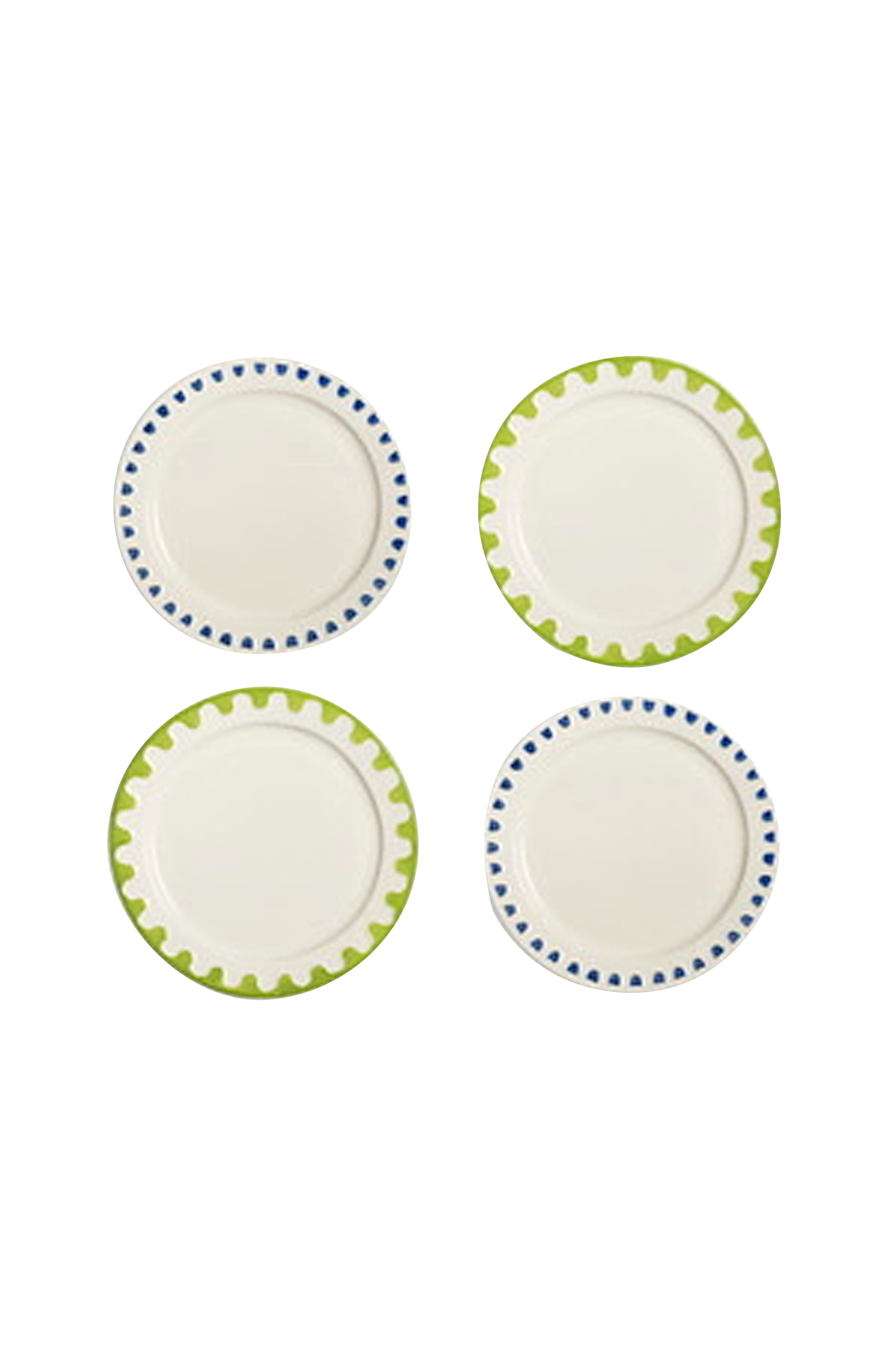 Dette sæt med fire morgenmadstallerkener er en smuk tilføjelse til ethvert bord og kombinerer funktionalitet med et strejf af folkeinspireret design langs kanten. Tallerkenerne er fremstillet af holdbart porcelæn af høj kvalitet og udstråler både elegance og robusthed, hvilket gør dem ideelle til både hverdagsbrug og særlige lejligheder. De levende farver og mønstre langs kanten skaber en indbydende atmosfære uden at overdøve selve maden. Det, der gør disse tallerkener helt unikke, er det mønster, der opstår, når de kombineres med andre dele fra samme kollektion. Hver tallerken har et individuelt design, som sammen med skåle og andre tallerkener danner et harmonisk folkemønster, der skaber et visuelt tiltalende sæt på bordet.