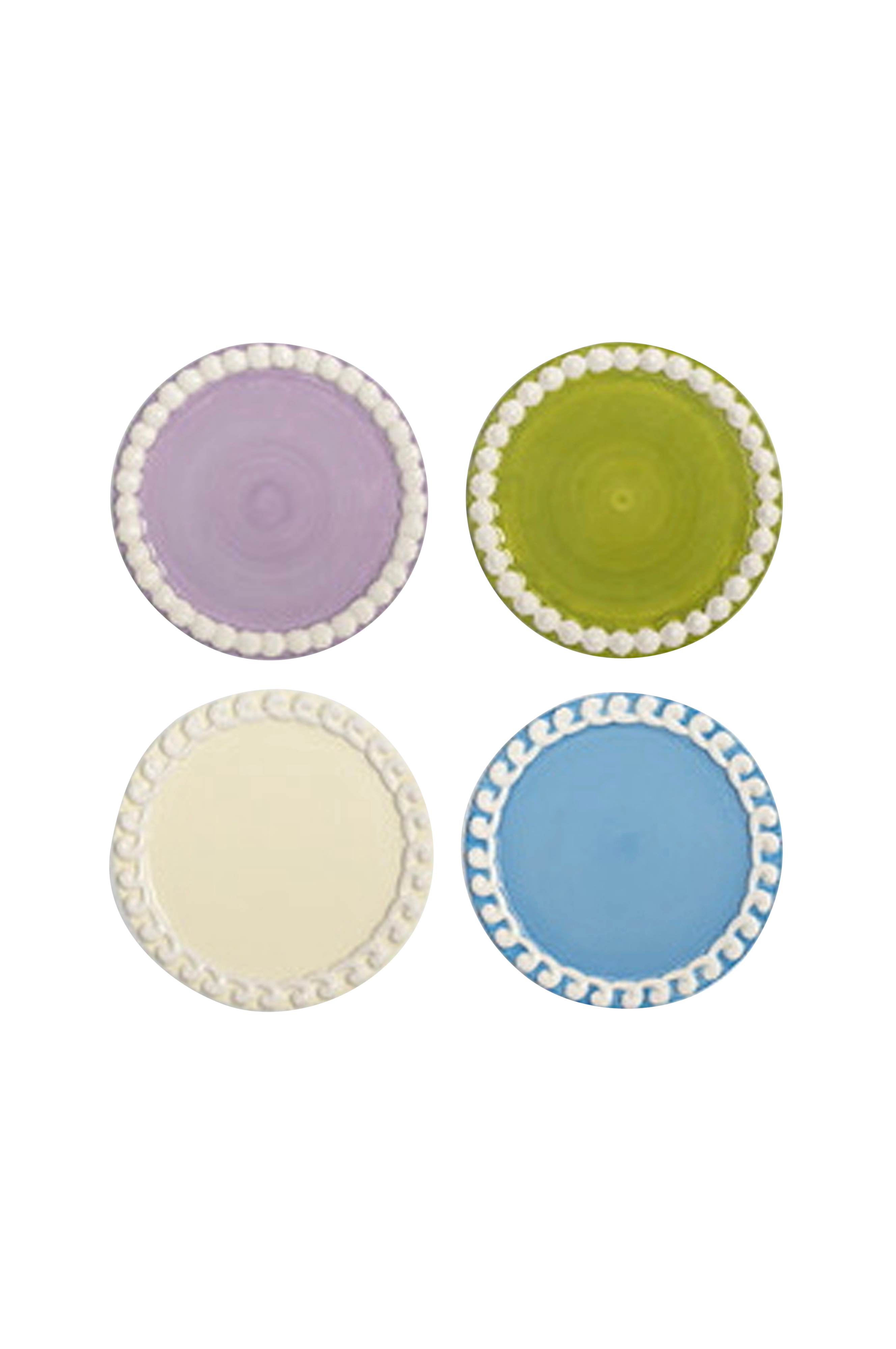 Dette sæt med 4 flødeskumstallerkener vil få dit mundvand til at løbe! De søde slikfarver kombineret med små hvirvler af flødeskum får dig virkelig til at længes efter et stykke kage. Server din yndlingskage eller andre små retter på disse tallerkener. Fremstillet af dolomit.