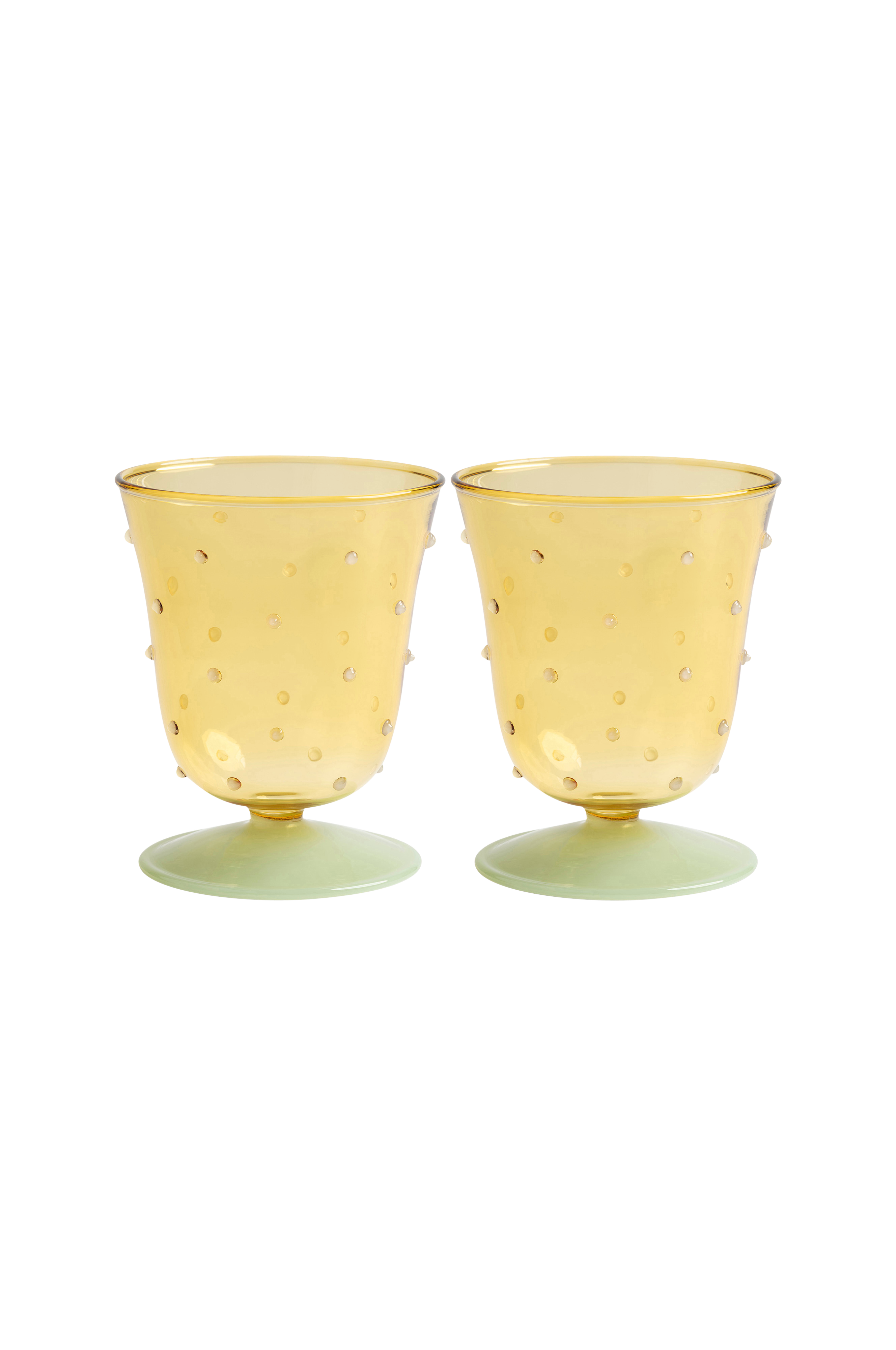 Vandglas dot sæt med 2, fremstillet af borosilikatglas. Tåler opvaskemaskine.