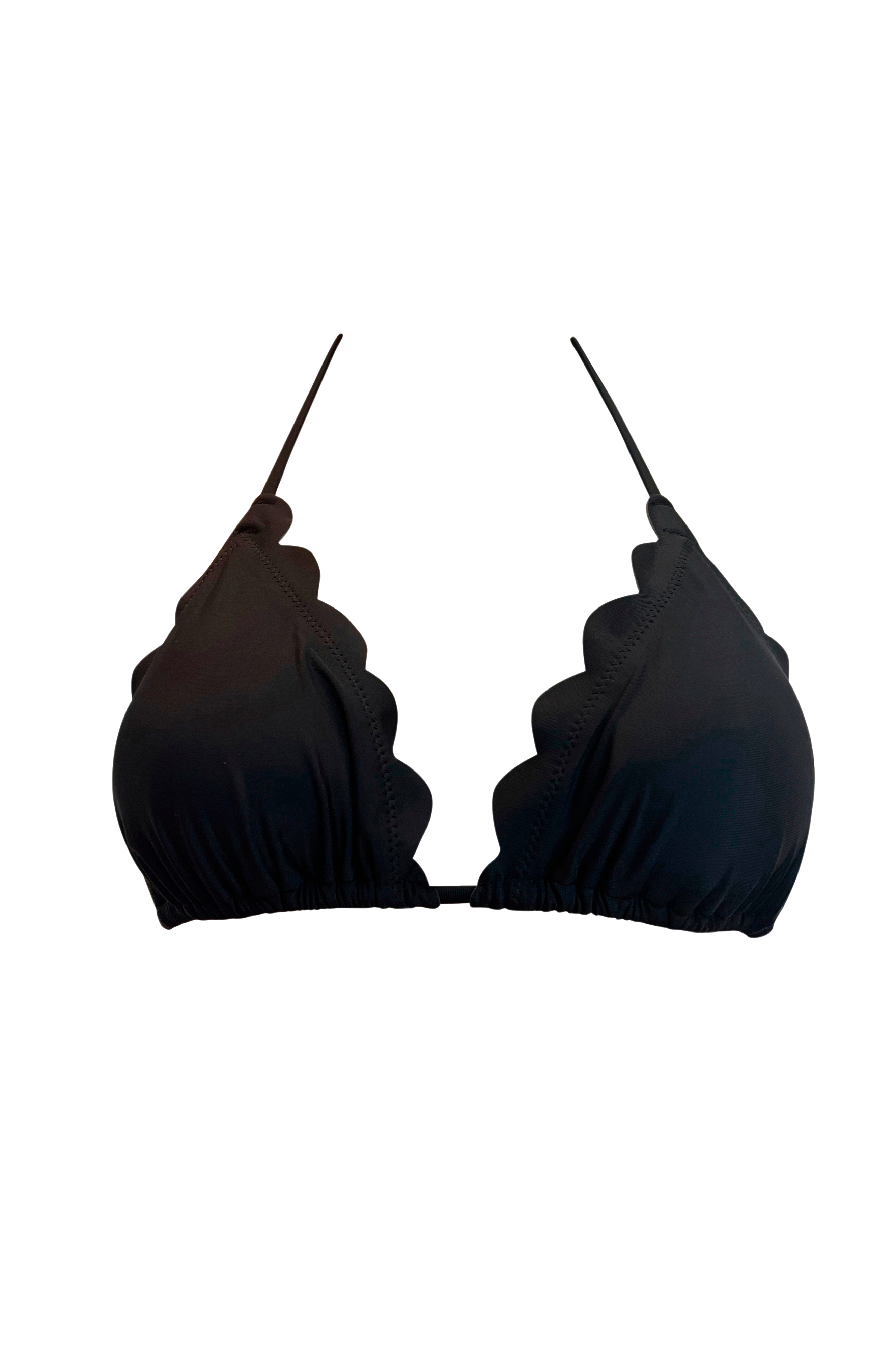 • Halterneckdesign• Aftagelig polstring• Bindebånd i nakken og i ryggen• Bølgeformede kanter