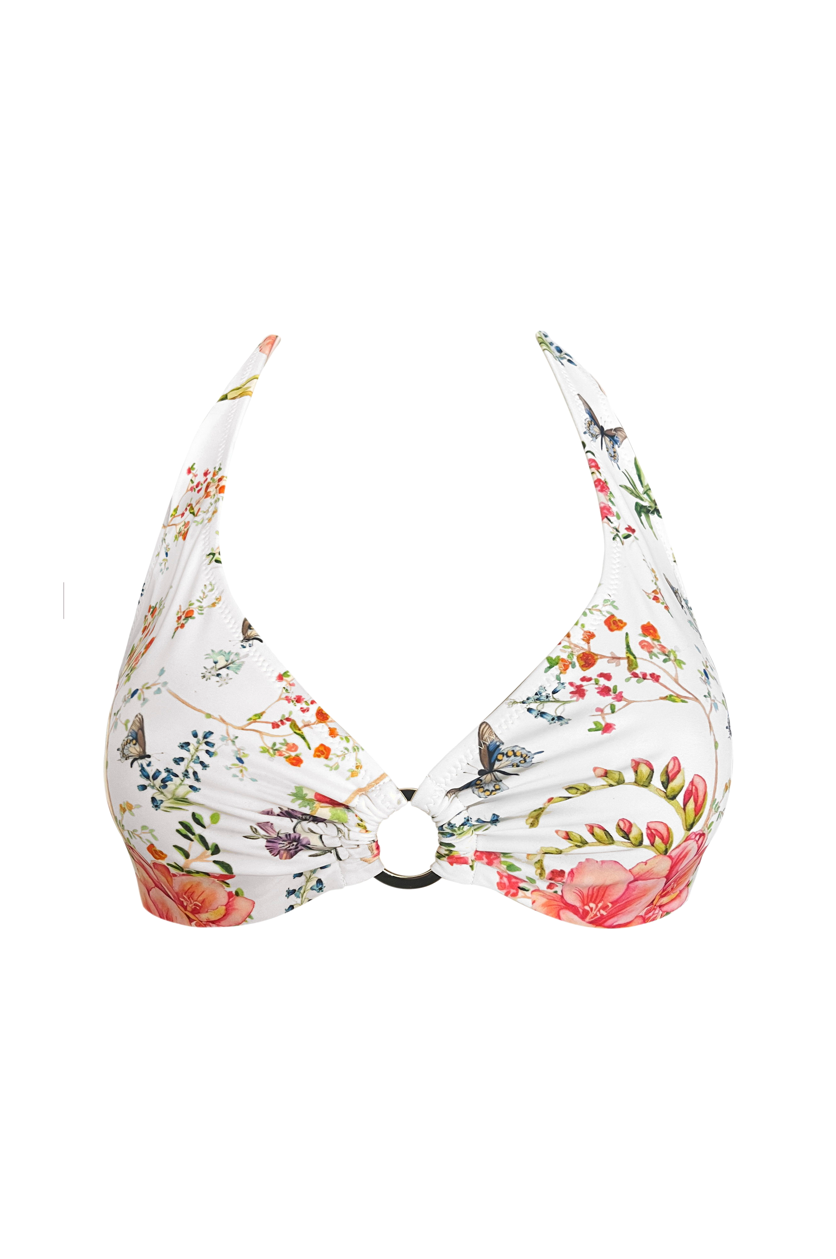 • Bikini-bh i mønstret polyamid-blanding med halterneckdesign• Trekantede skåle med udtagelig polstring• Bindebånd i ryggen og i nakken• Dekorativ, rund detalje mellem skålene