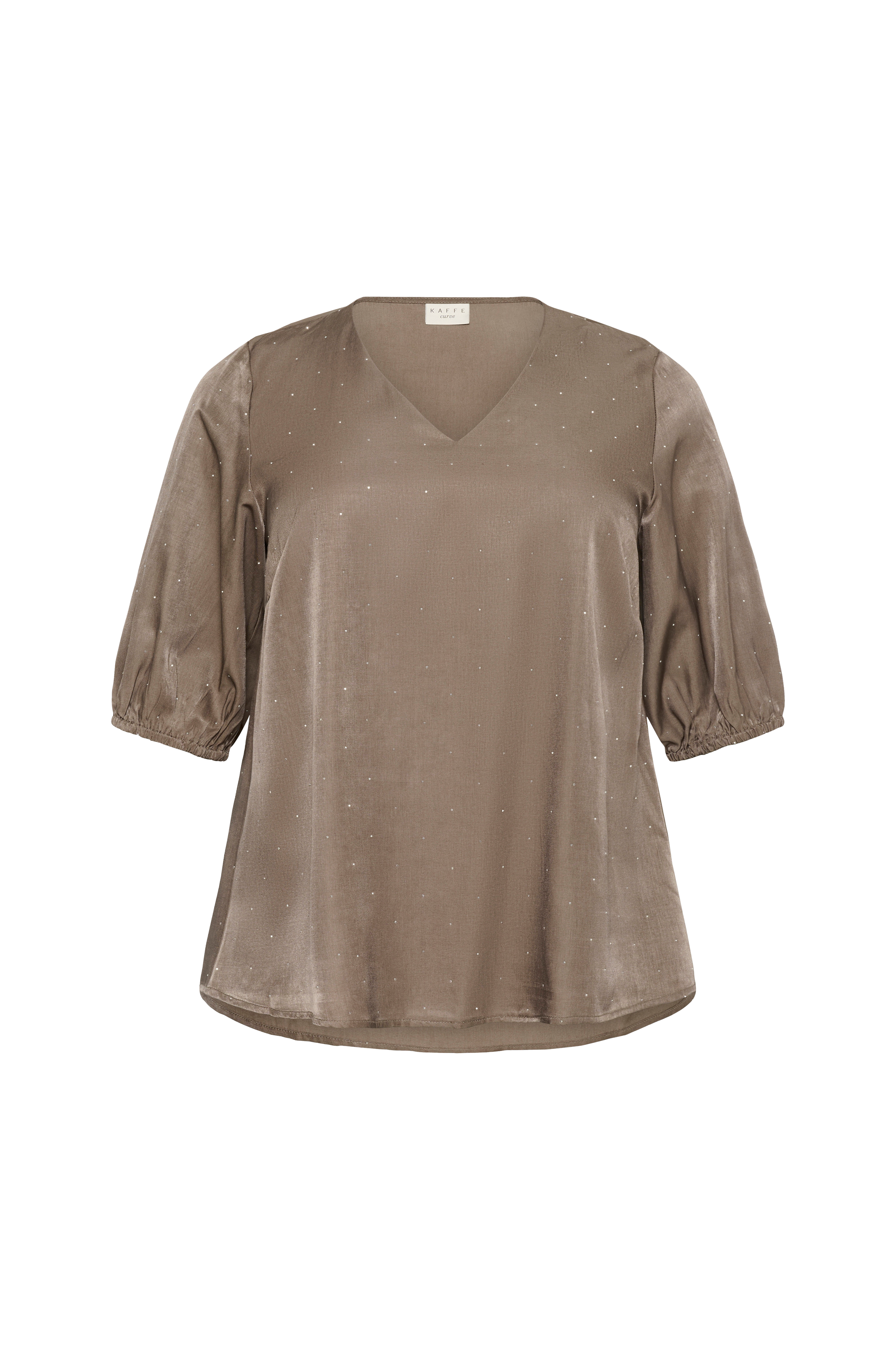 • Bluse med små, glitrende rhinstene hele vejen rundt