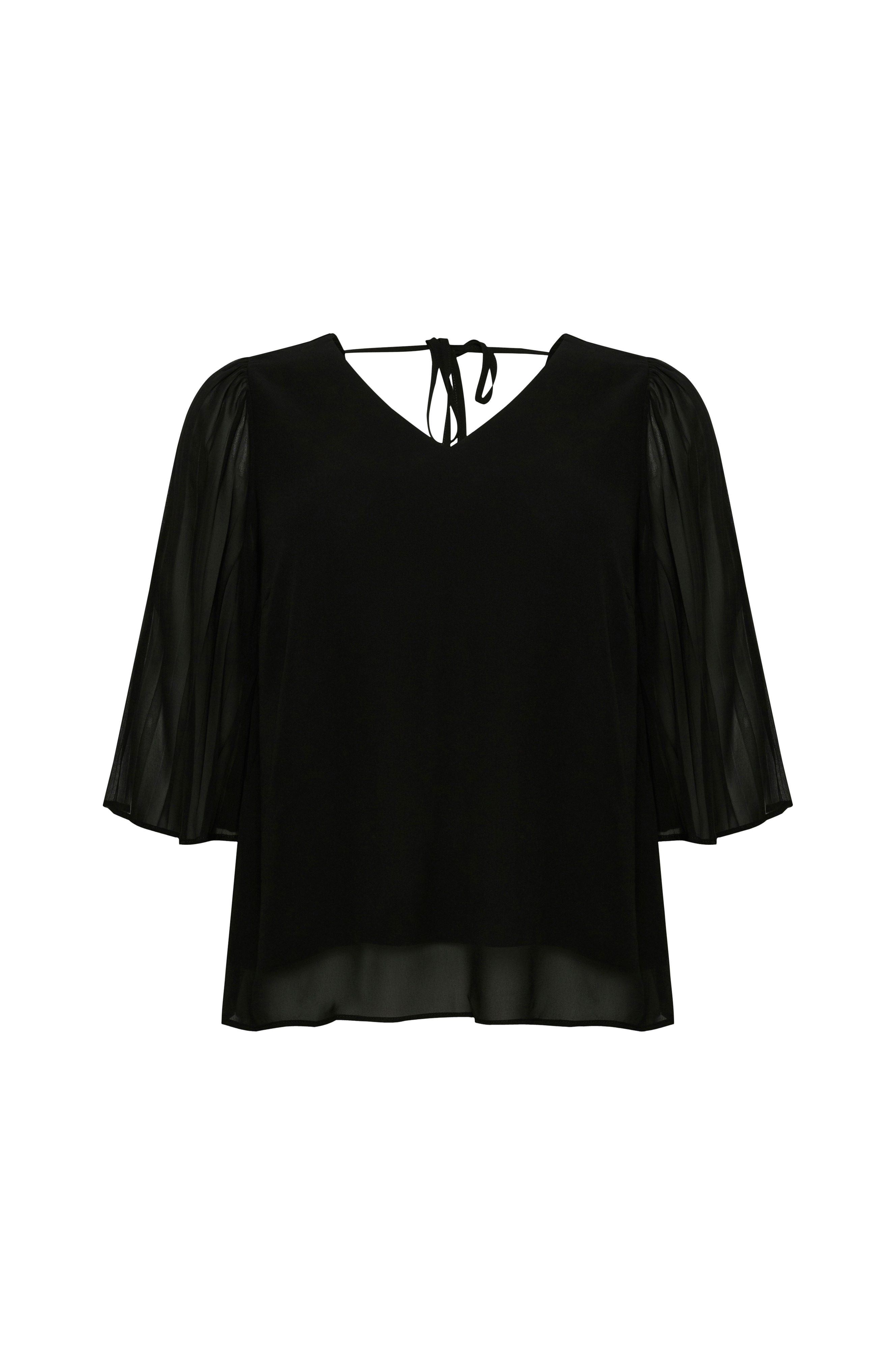 • Store størrelser• Lige model i chiffon• V-udskæring foran og bagpå med bindebånd i nakken• Halvlangt ballonærme med svaj• Foret