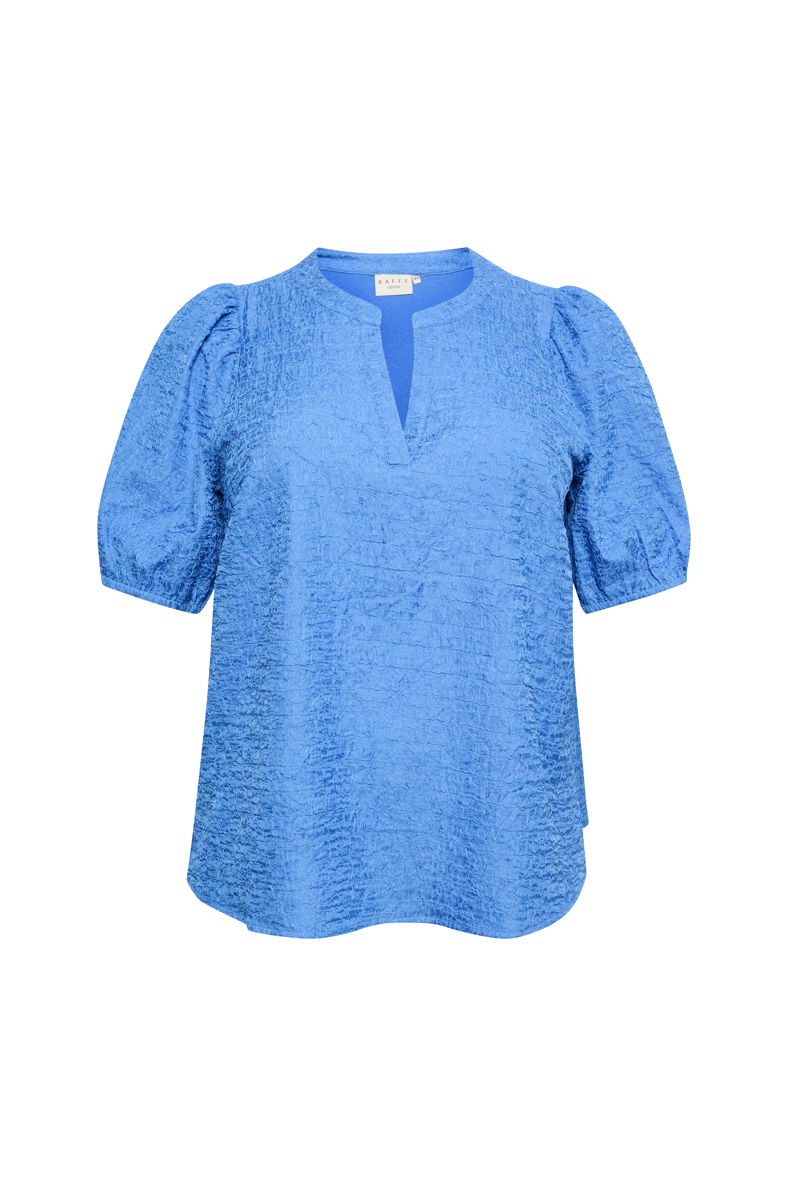 • Behandlet materiale med glans• V-udskæring• Korte ballonærmer• V-udskæring• Store størrelser