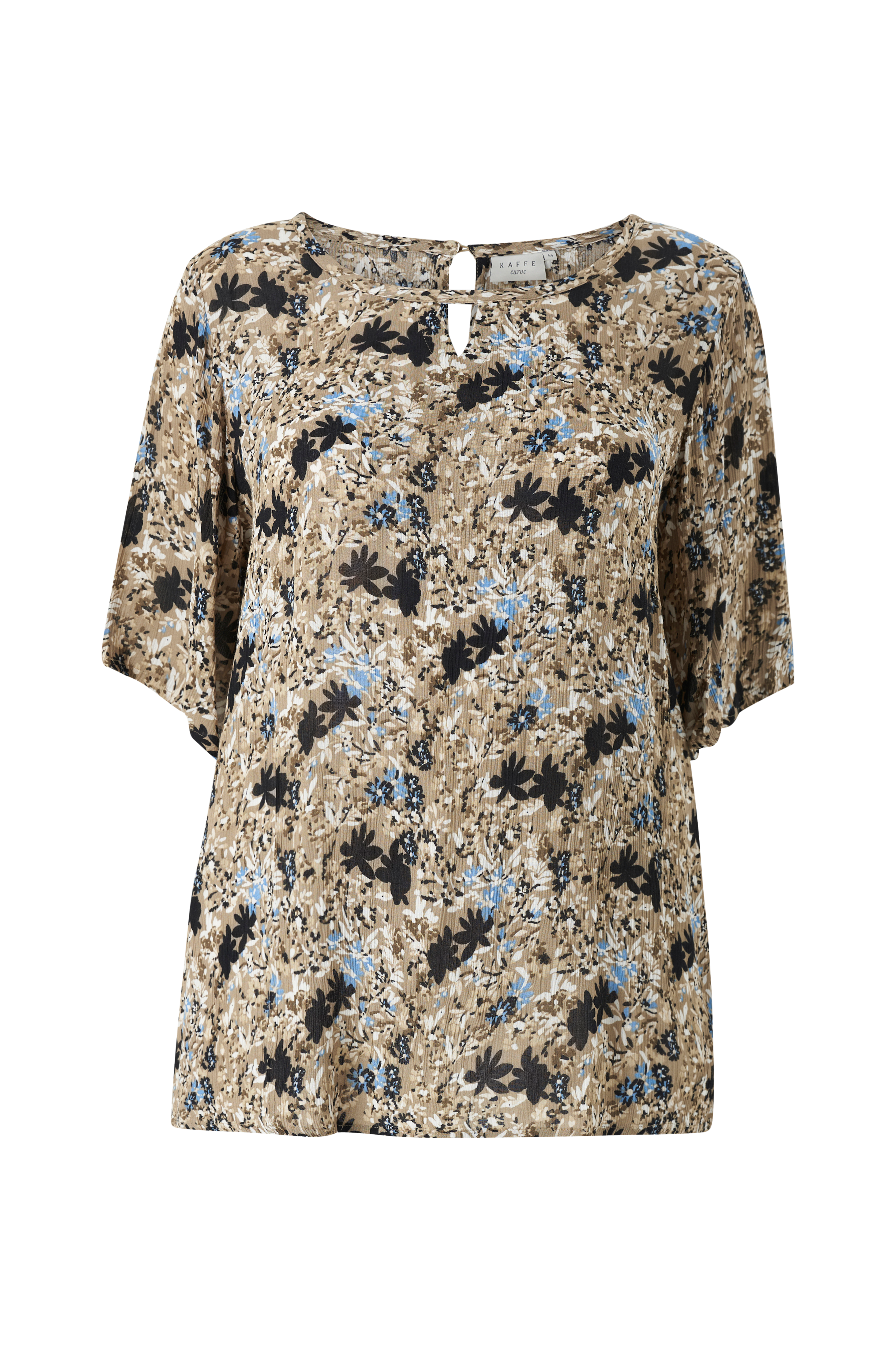 • Bluse i viskose med printet mønster• Rund halsudskæring med lille åbning foran• Ventilation i nakken med knap• Korte, brede ærmer• Store størrelser