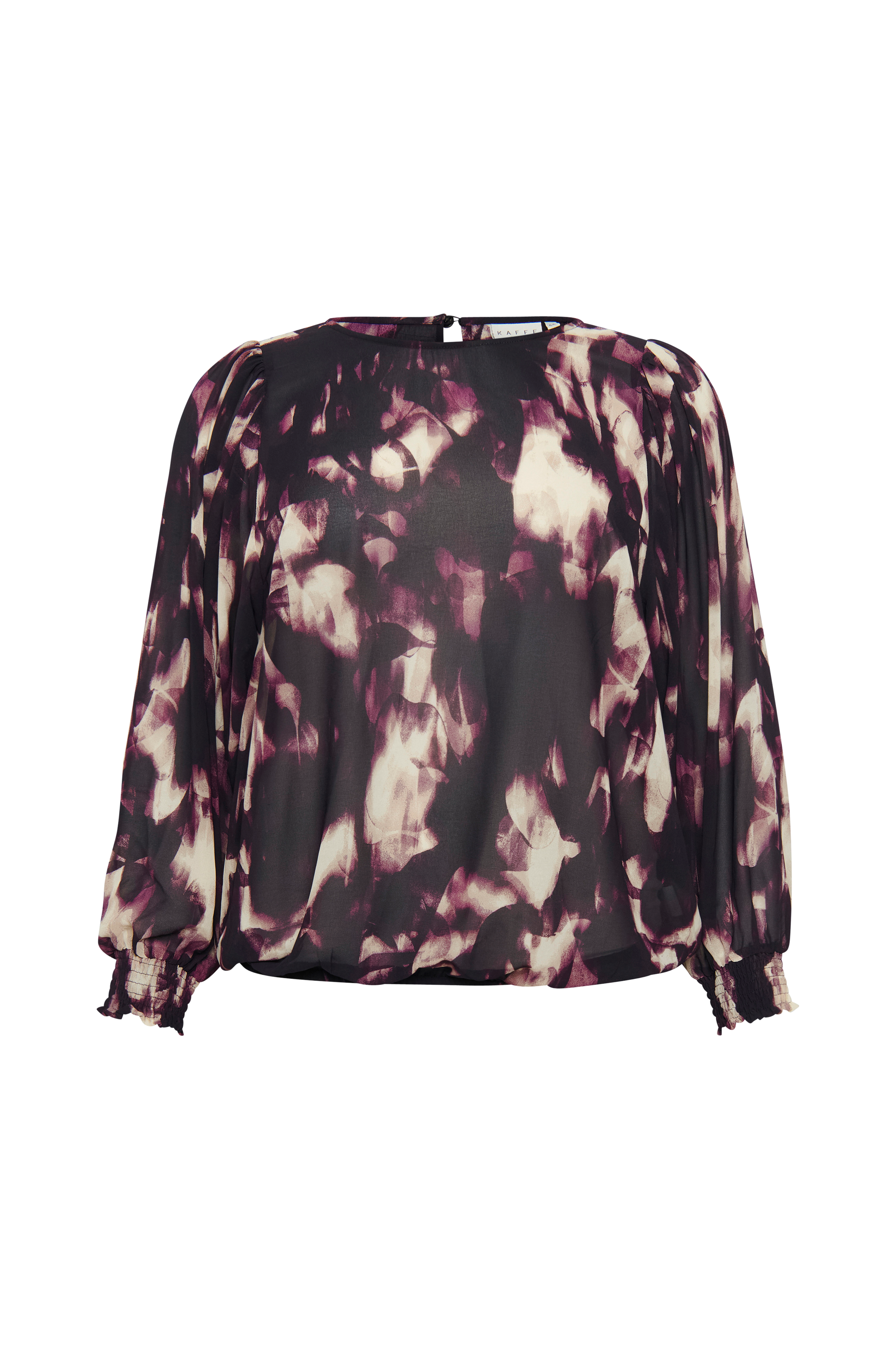 • Store størrelser• Lige model i chiffon• Rund hals med knap i nakken• Ekstra bredt ballonærme med smock ved manchetterne• Elastik ved nederste kant