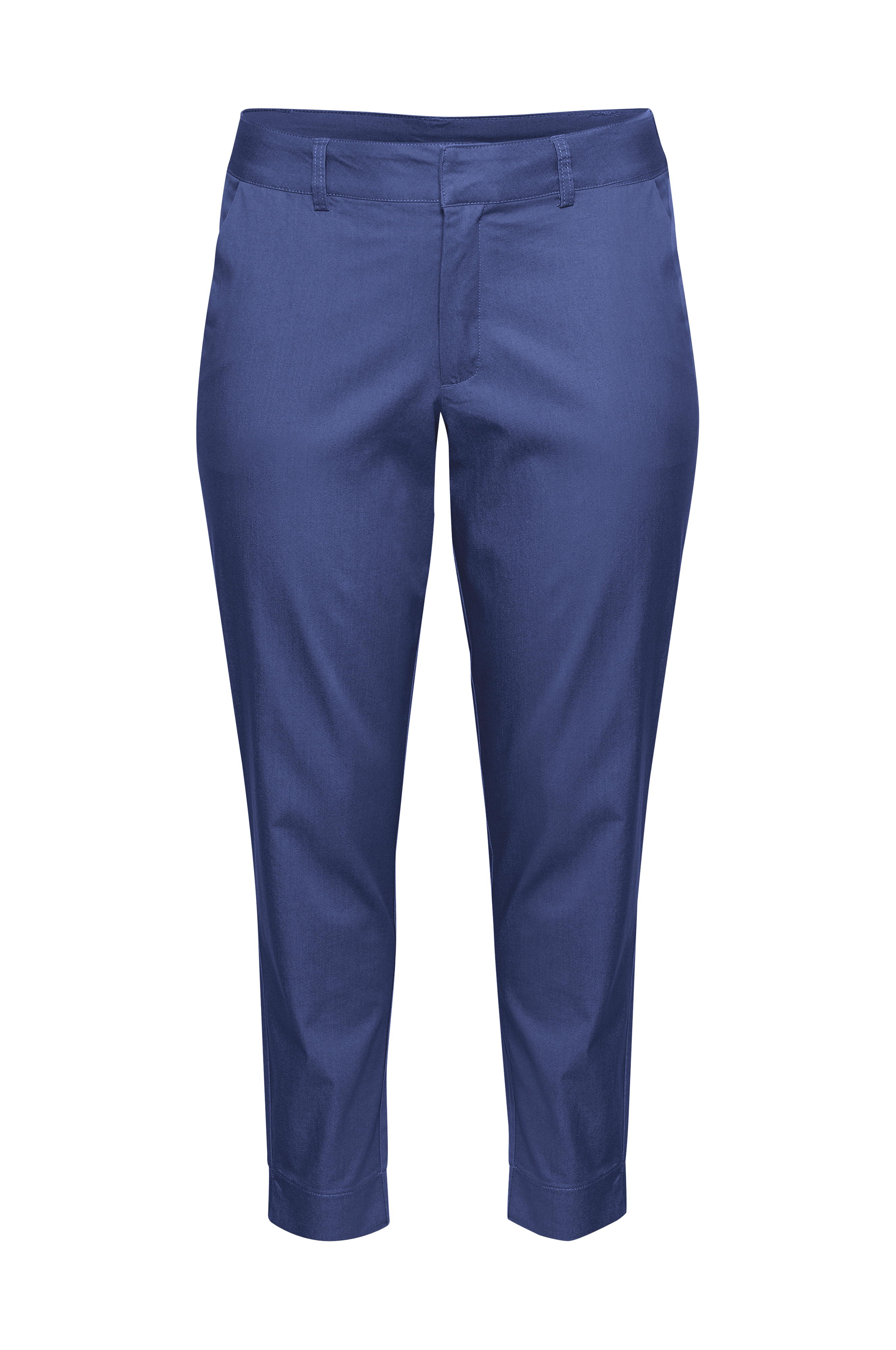 • Store størrelser• Model med indsnævrende benafslutning og korte slidser på ydersiden• Taljebånd med stropper• Skrå lommer foran• Snydelommer bagpå