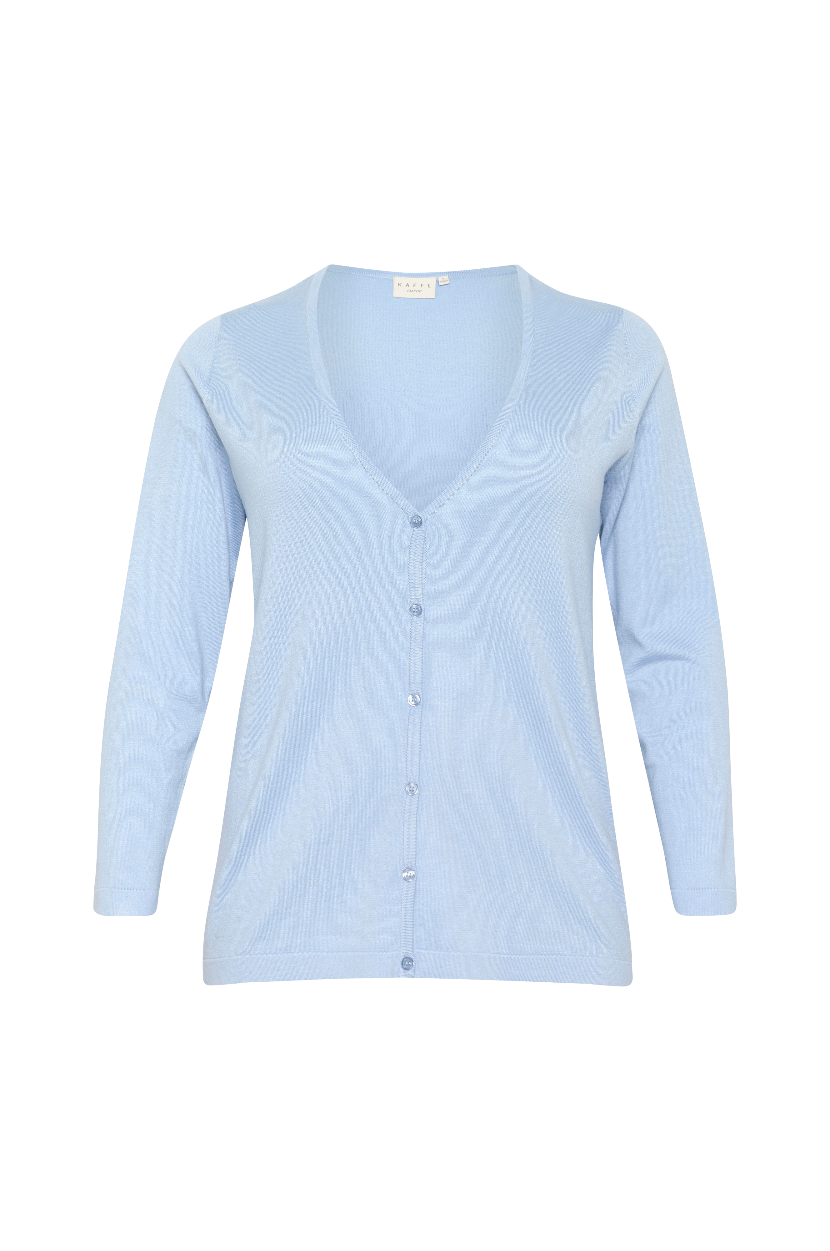 • Store størrelser• Lige, fintstrikket model• Dyb v-udskæring• Knapper foran• Langt ærme