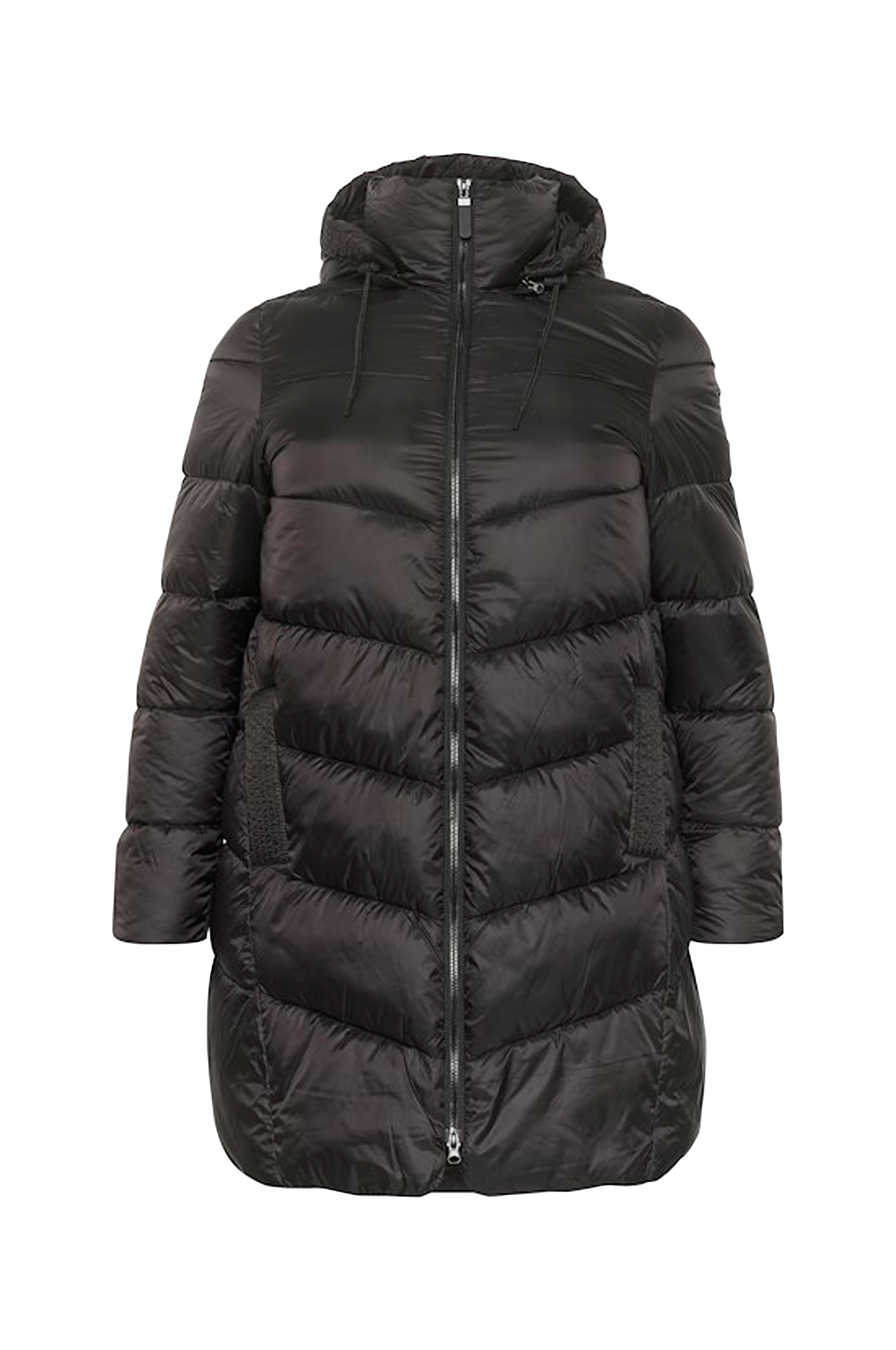 • Quiltet, foret frakke• Aftagelig hætte med træksnørre• To-vejs lynlås• To lommer• Elastik ved manchetterne• Store størrelser• Længde: 90 cm i størrelse 44