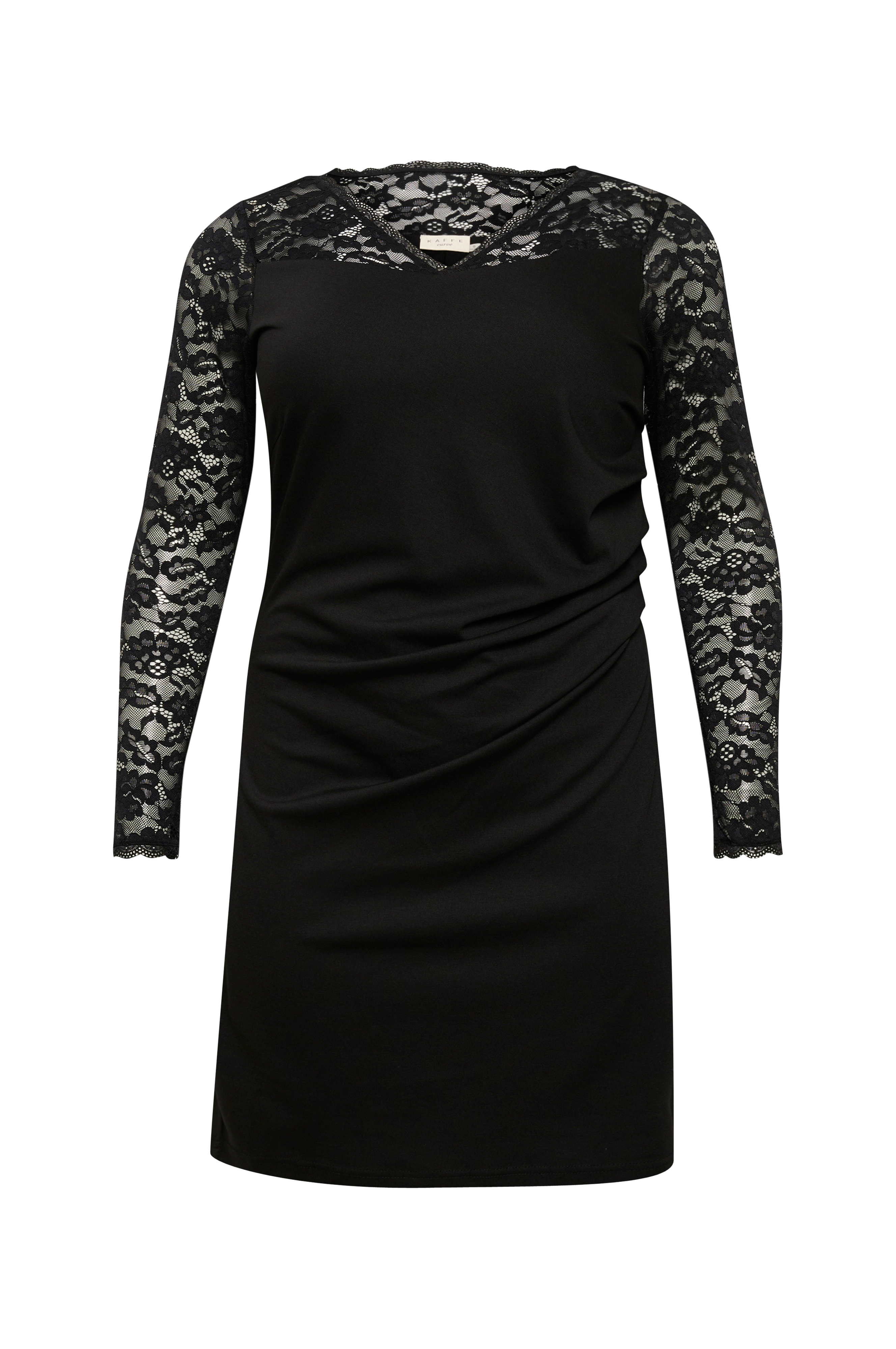 • Figursyet kjole• Blonde på toppen og på ærmerne• Lægge ved taljen• Store størrelser• Længde: 102 cm i størrelse S