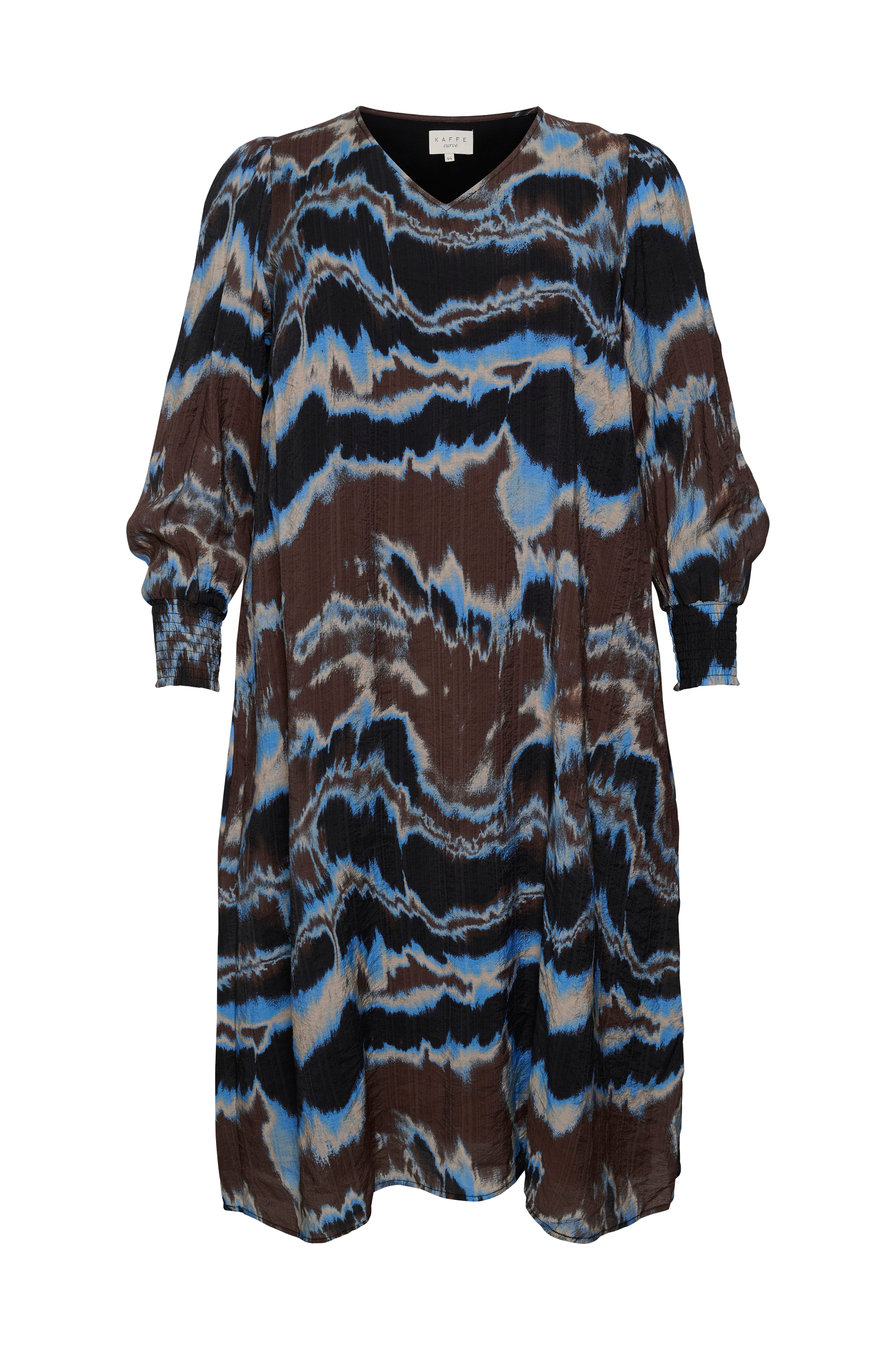 • Store størrelser• Lang model med svaj• V-formet halsudskæring• Langt ballonærme med elastisk smock ved manchetterne• Indlagte sidelommer• Foret• Længde: 120 cm i størrelse 42